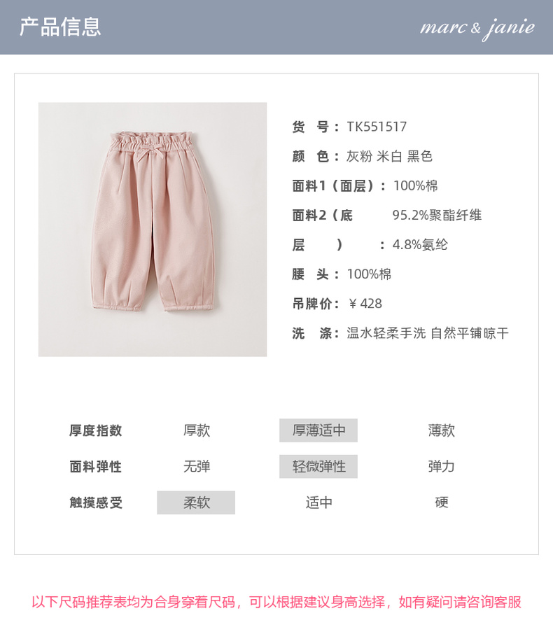 【奥利绒】马克珍妮女童花边蝴蝶结加绒灯笼裤2025秋冬新款551517