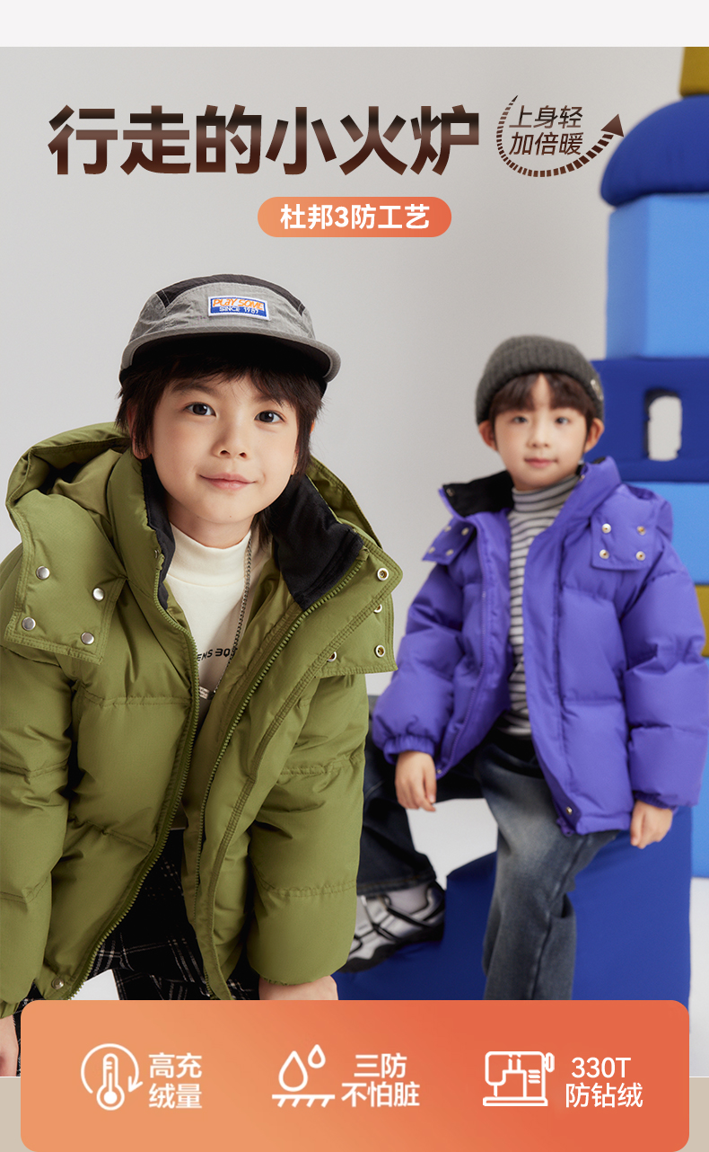 【团购价279.9】多多家男童羽绒服三防2024新款秋冬款儿童男孩加厚面包服冬装外套9704