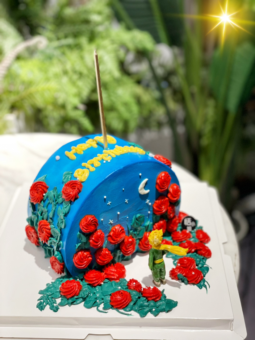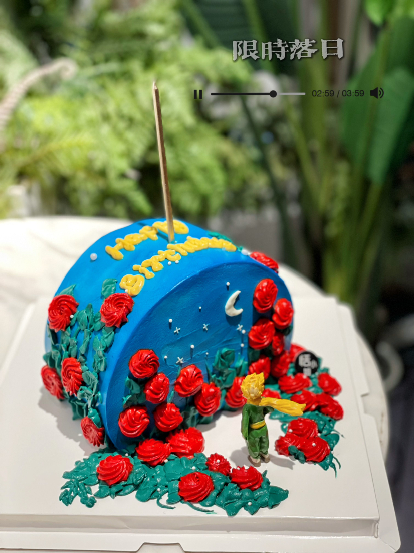 愿你历尽山河,仍然觉得人间值得,小王子玫瑰落日蛋糕,温馨提示:彩色奶油虽为植物色素安心食用,但存在染色可能,请大家不要随意涂抹。蛋糕内部有竹签固定,请不要使用蛋糕嬉戏打闹