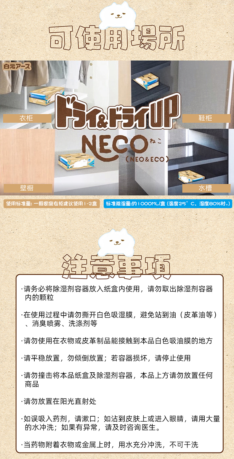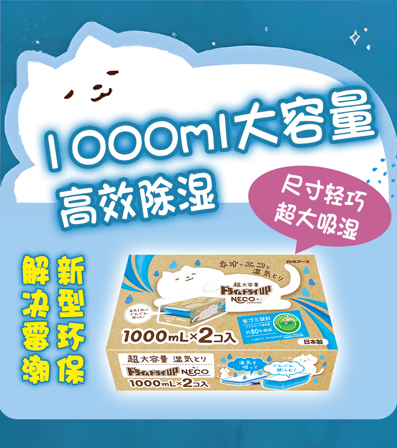 白元NECO除湿剂 2盒装(无香型1000ml)