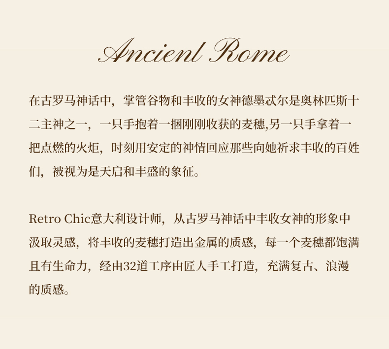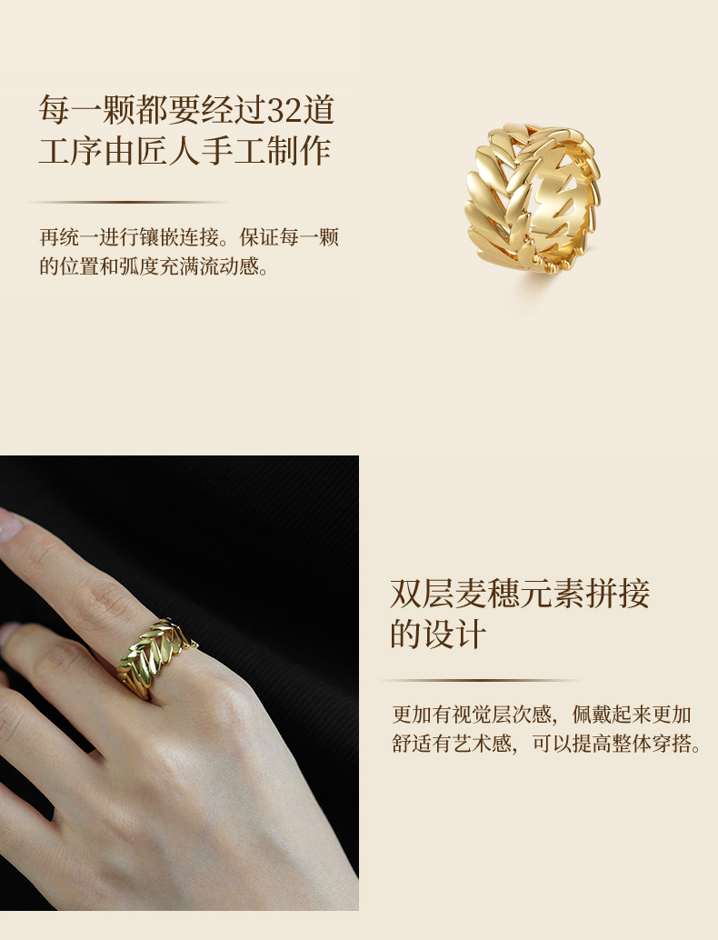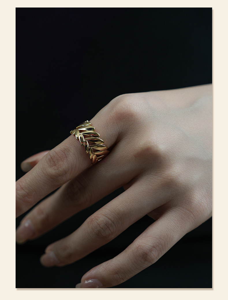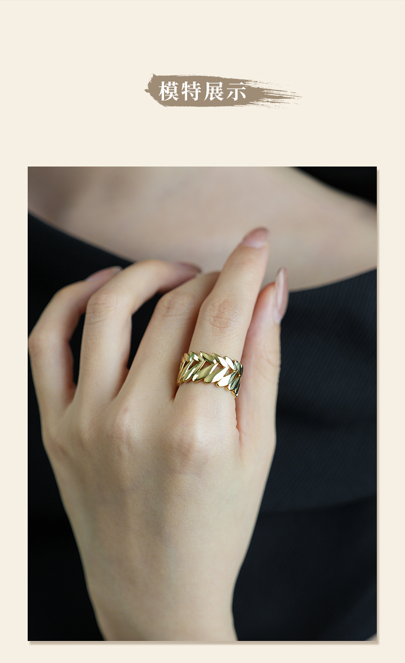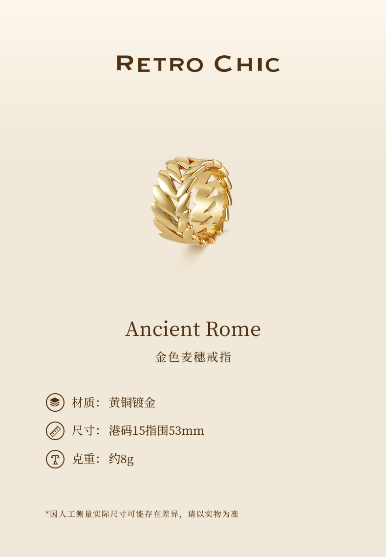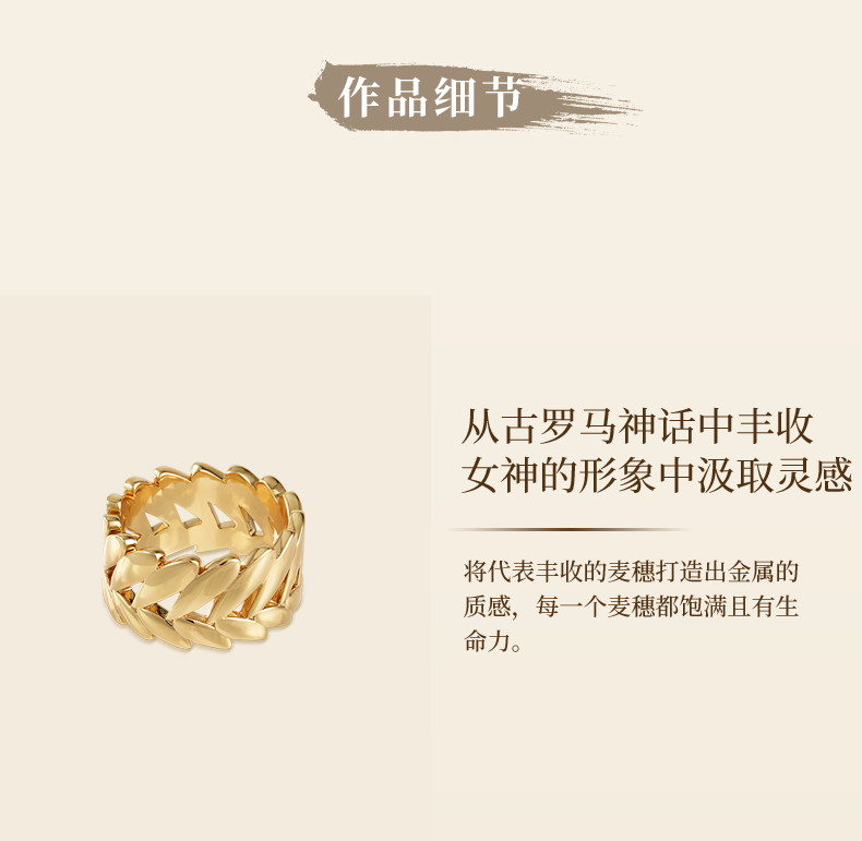 Retro Chic意大利复古时尚首饰 金色麦穗戒指