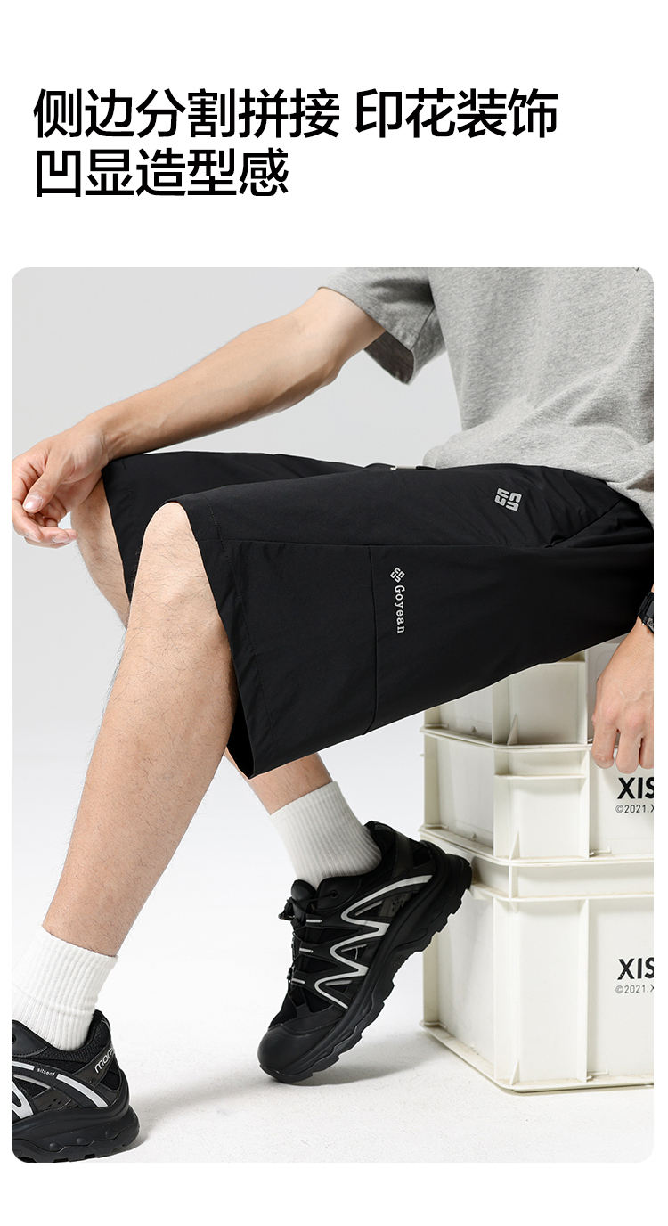 GXG男装25夏季时尚拼接缺口设计户外舒适透气运动百搭休闲短裤K&C