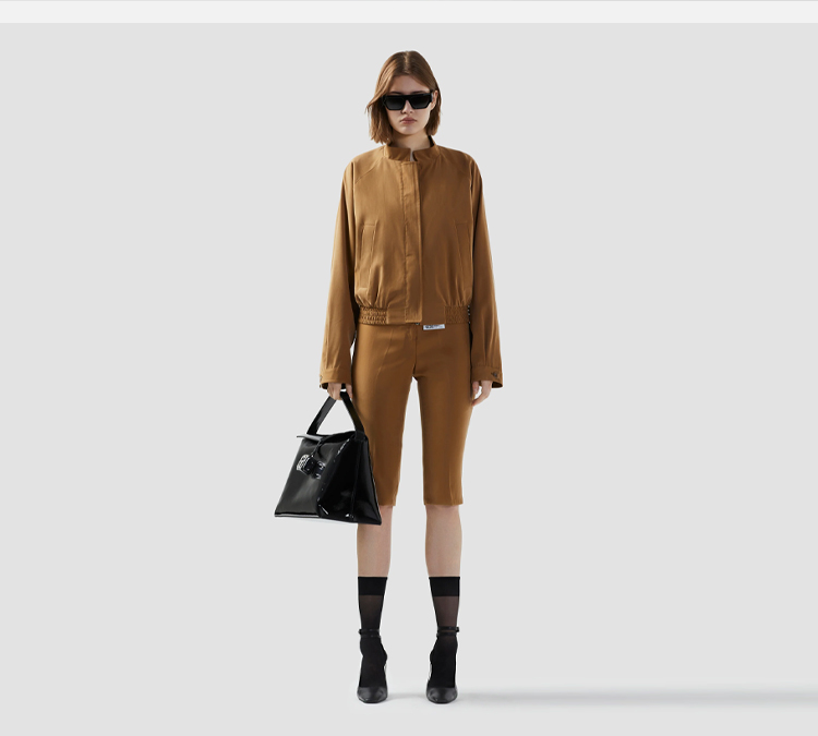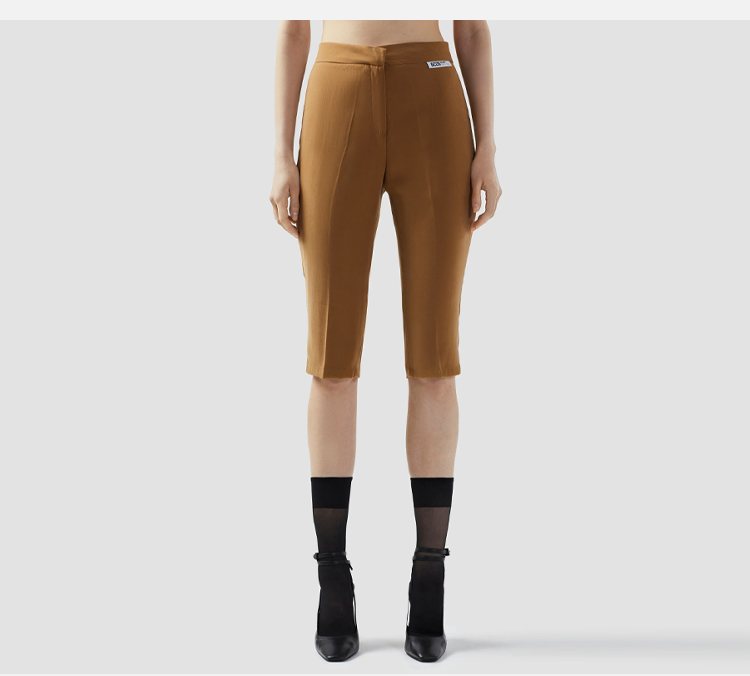 GCDS 女士字母徽标标签铜氨丝纤维剪裁休闲七分裤 棕色 B1CW2913TM9 37