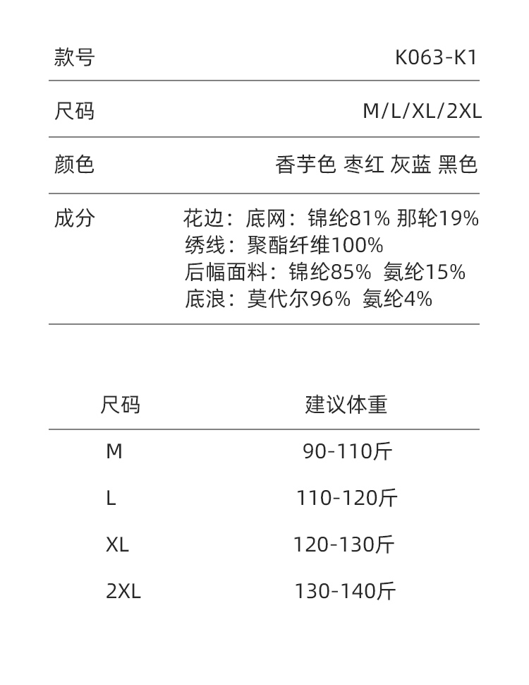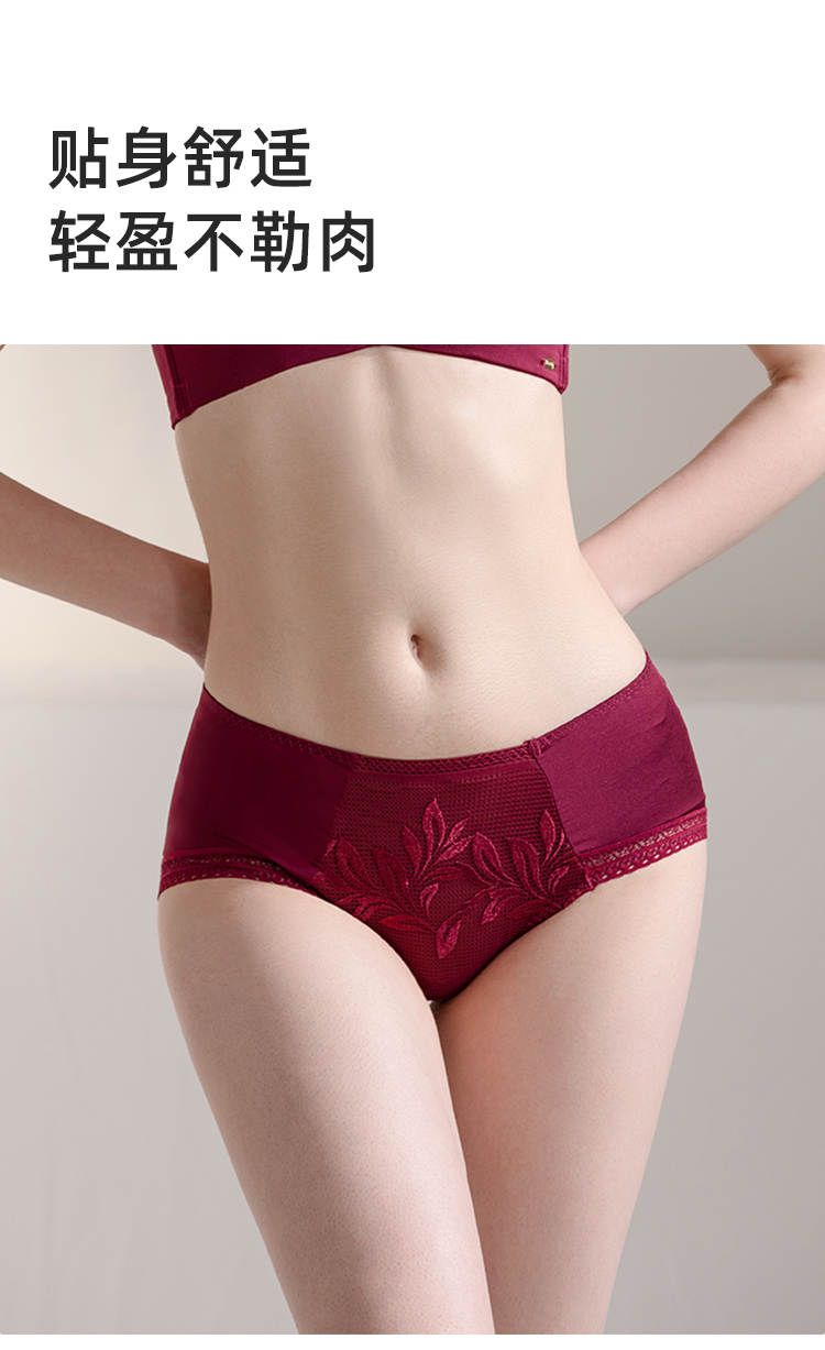 【99元3条,下单数量拍3】皇家丽美 女士底裤 063配套刺绣内裤 久坐不夹 PP 莫代尔底档云感裸软 丝滑双弹中腰裤K063-K1