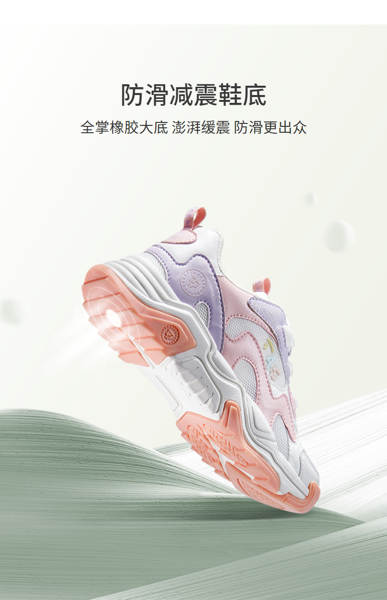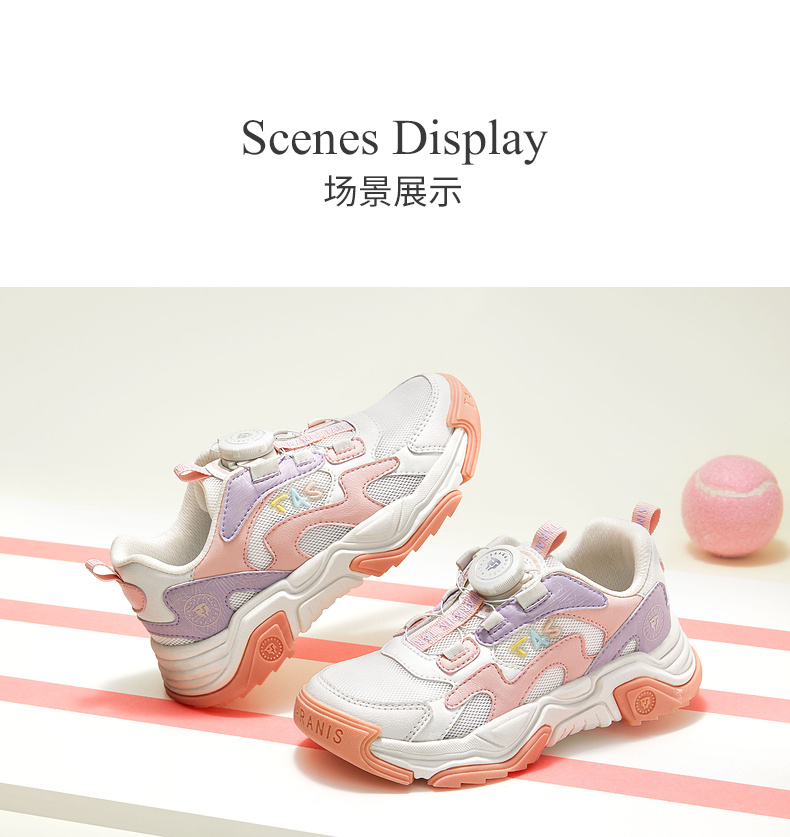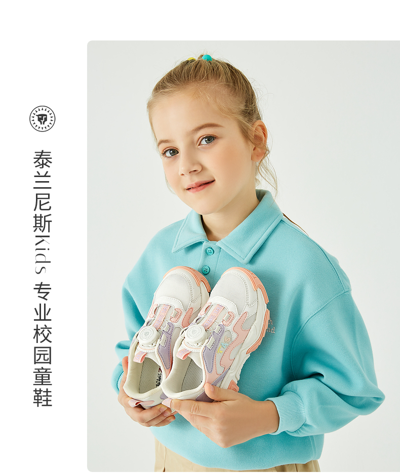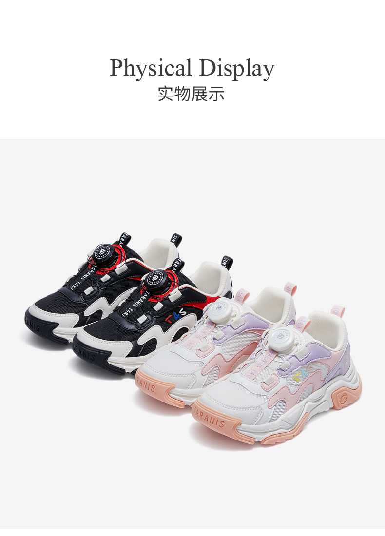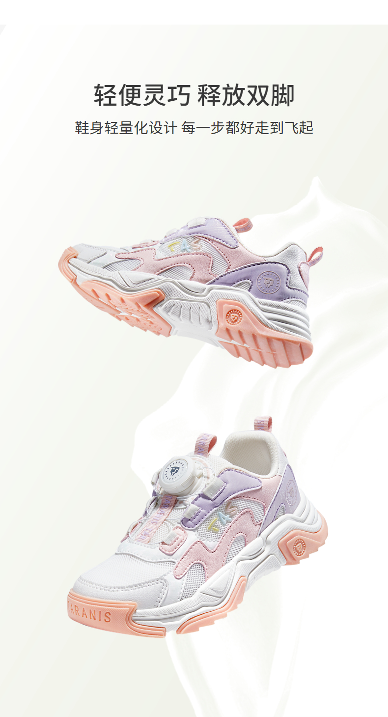 泰兰尼斯kids童鞋女童旋钮运动鞋男童春季透气中大童跑步鞋老爹鞋 T01D3A2613