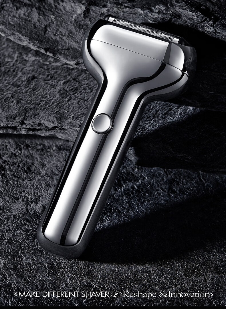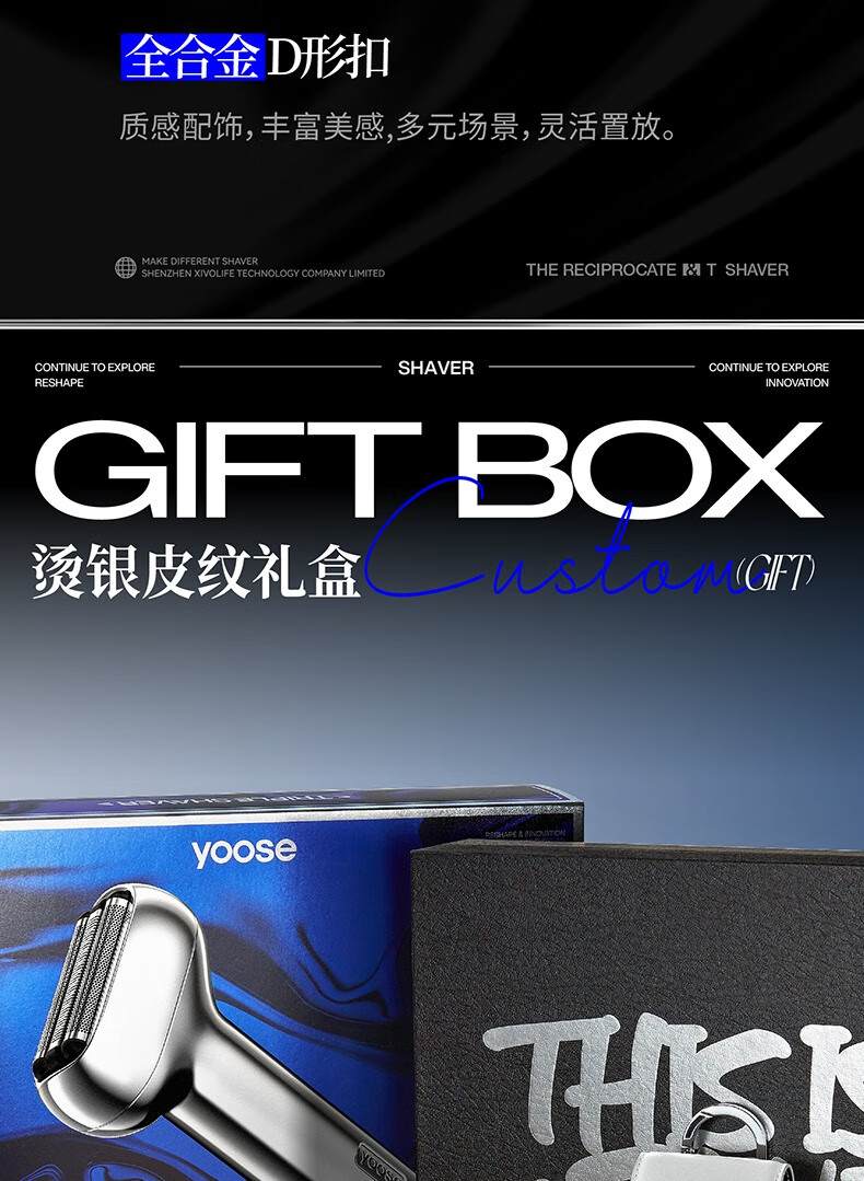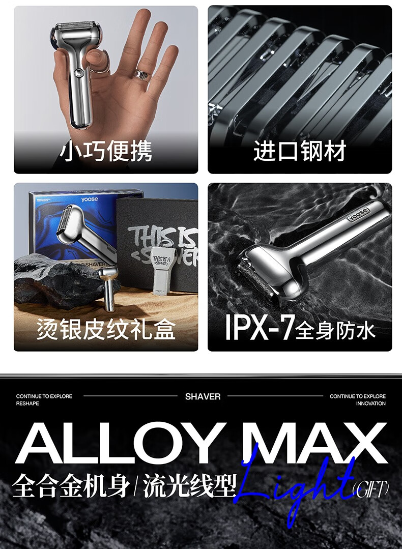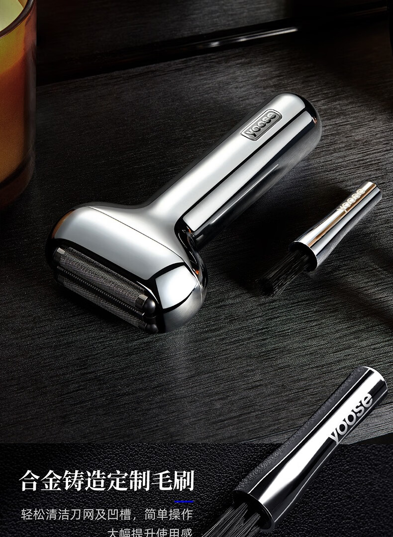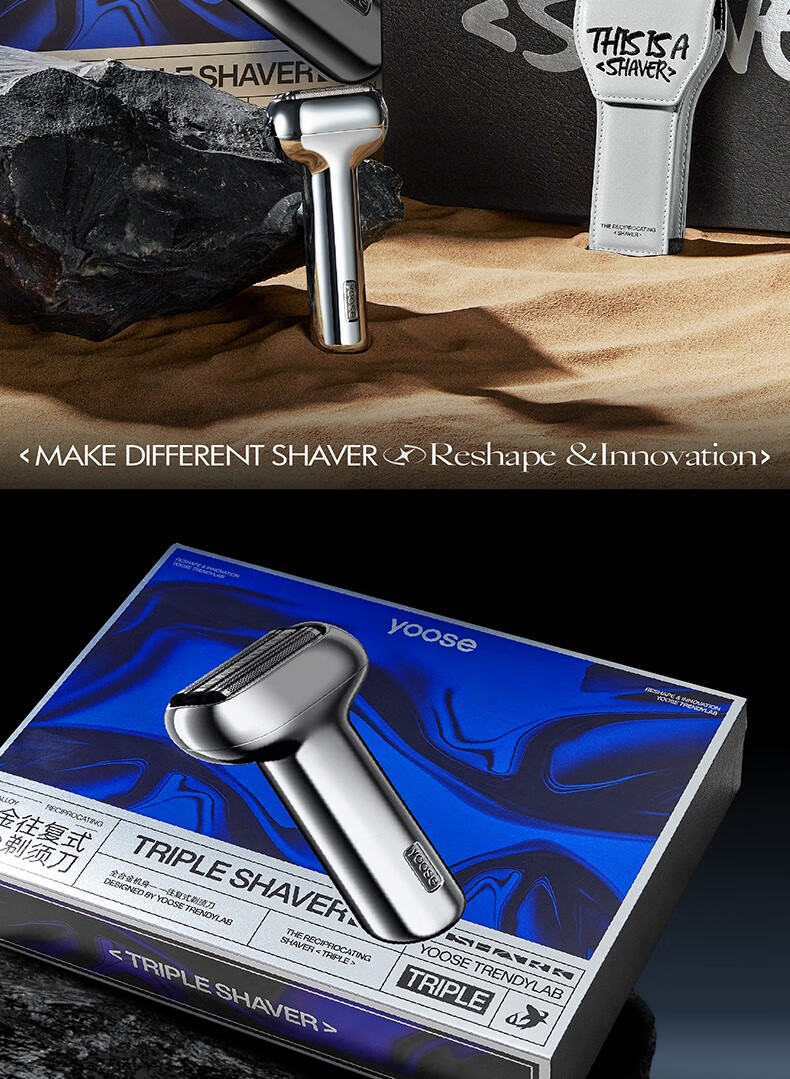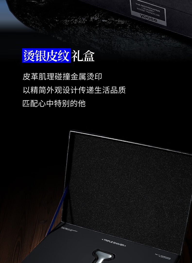 有色(yoose)电动剃须刀往复式迷你便携合金三刀头刮胡刀_生日礼物情人节送男朋友老公胡须刀礼盒_T1电镀银
