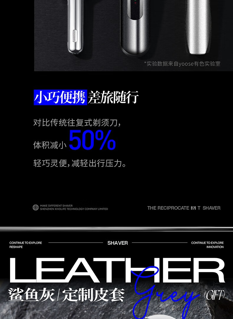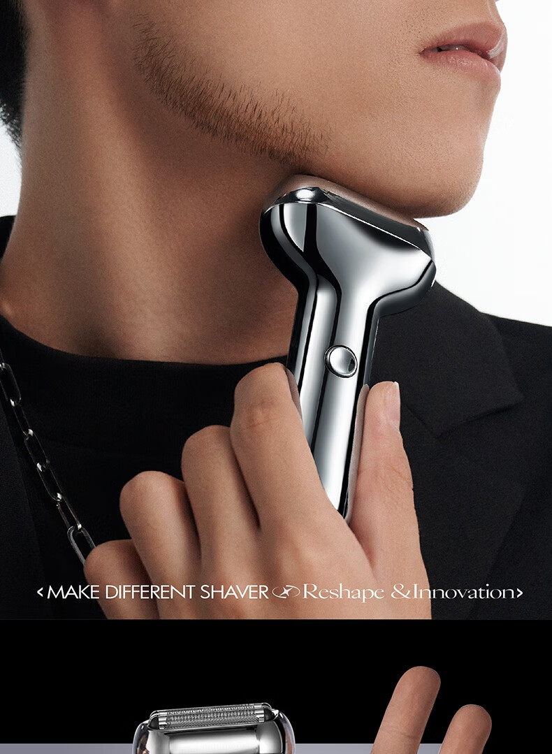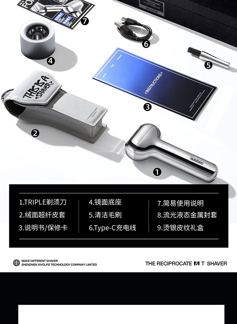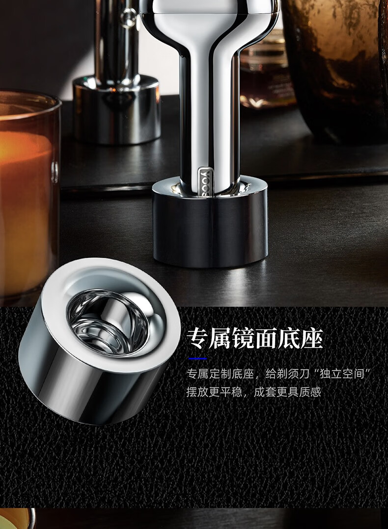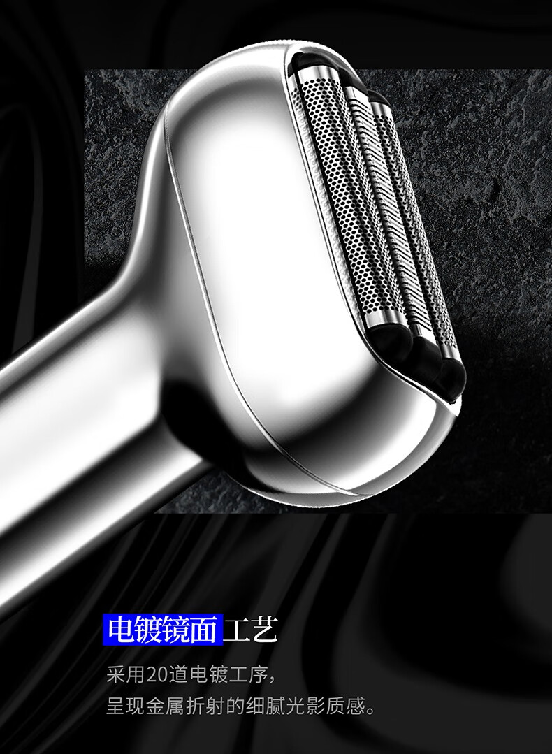 有色(yoose)电动剃须刀往复式迷你便携合金三刀头刮胡刀_生日礼物情人节送男朋友老公胡须刀礼盒_T1电镀银