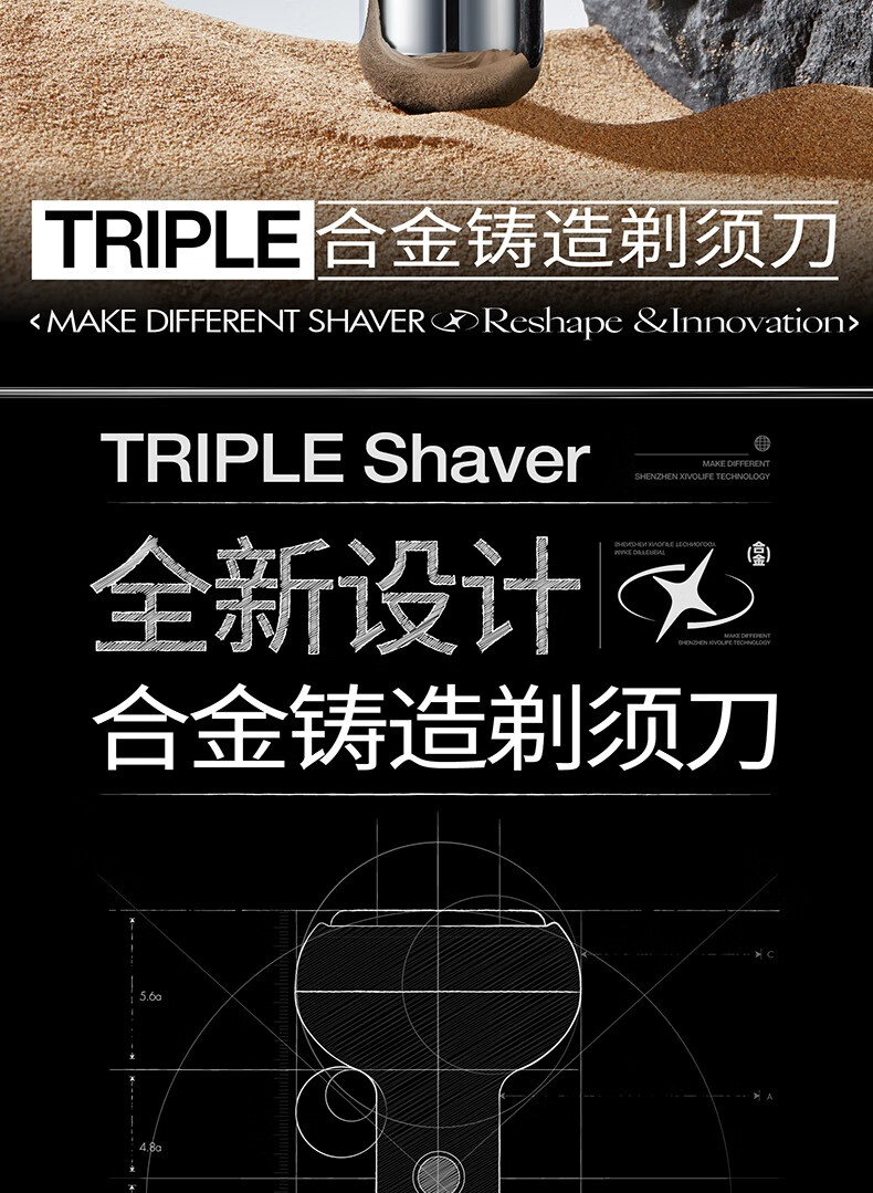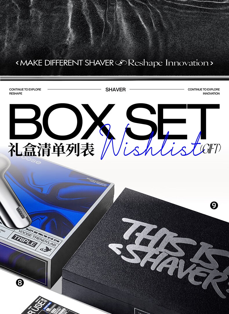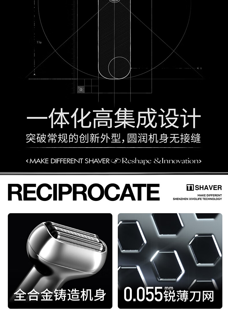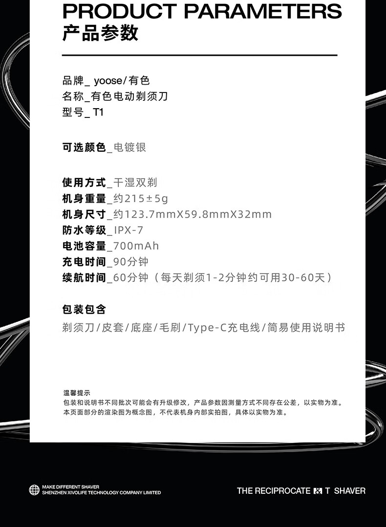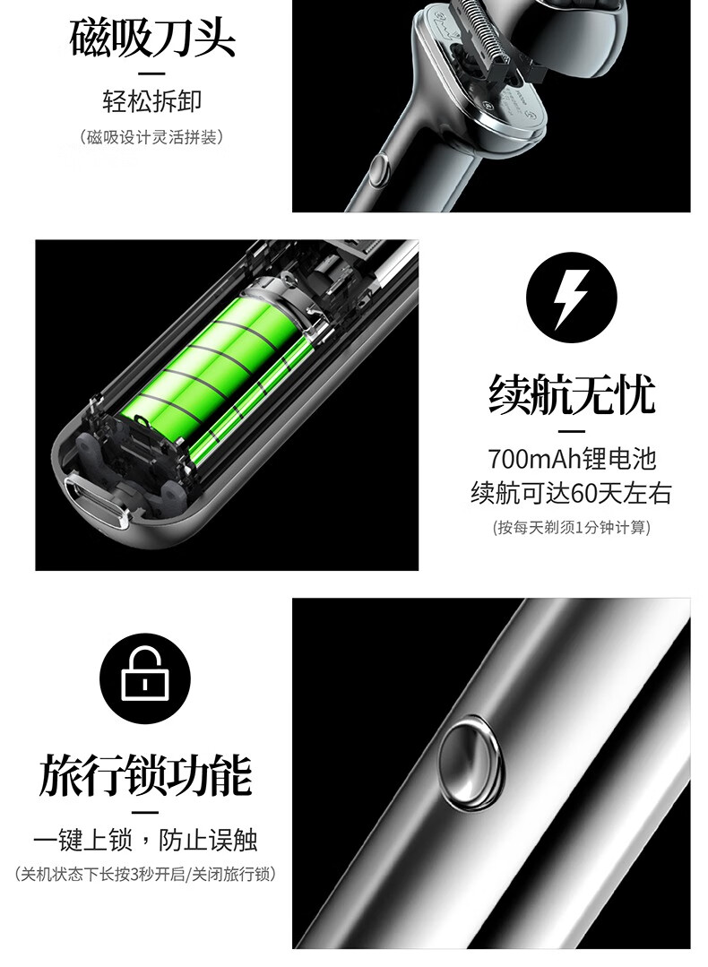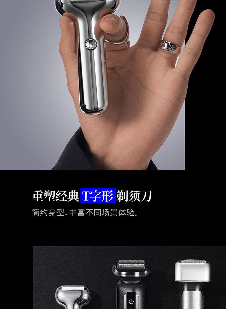 有色(yoose)电动剃须刀往复式迷你便携合金三刀头刮胡刀_生日礼物情人节送男朋友老公胡须刀礼盒_T1电镀银