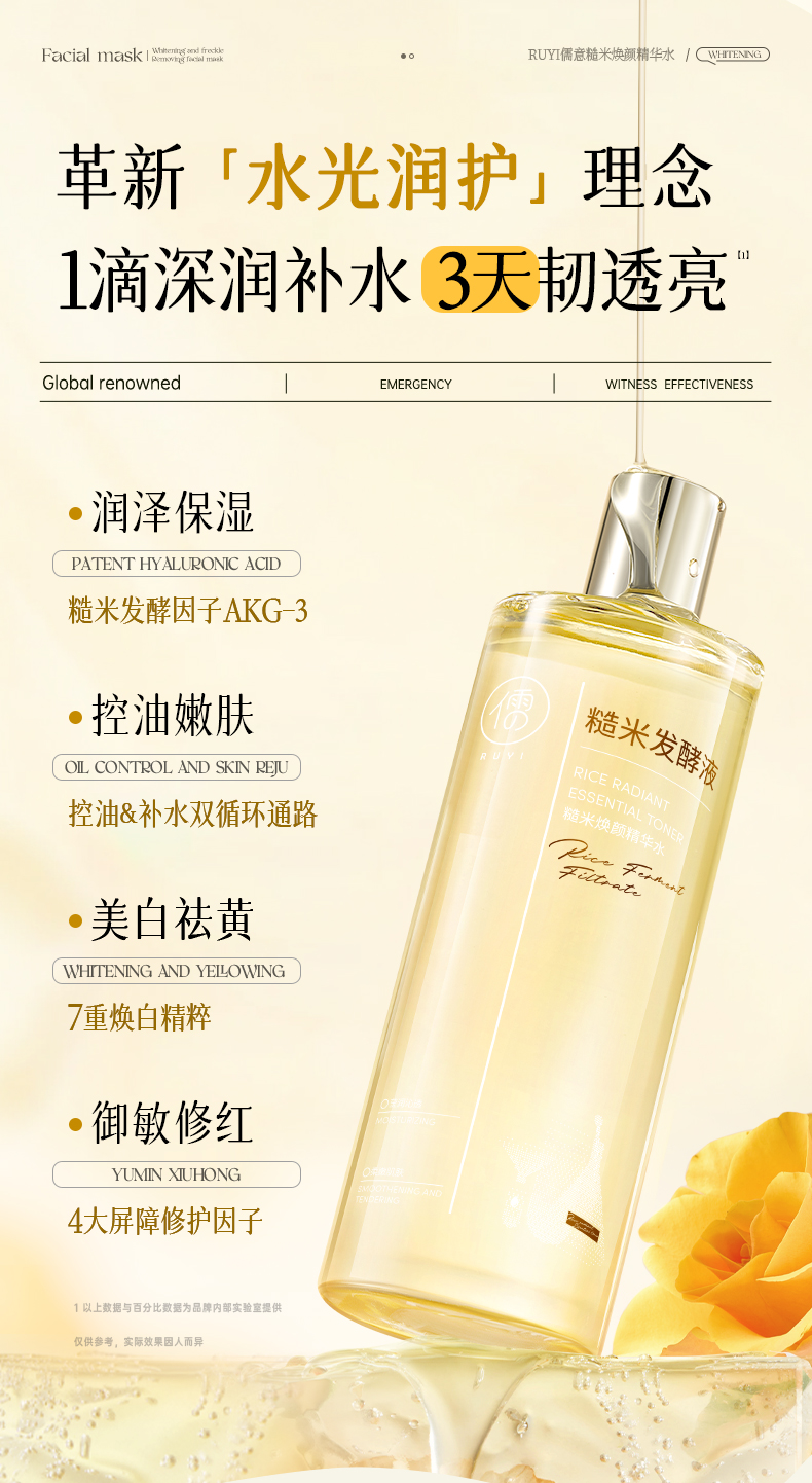【⚡抢!第2件0元,需拍2件】儒意糙米焕颜精华水500ml 控油美白爽肤水去黄提亮湿敷保湿水乳精华补水女官方神仙水|儒意官方旗舰店