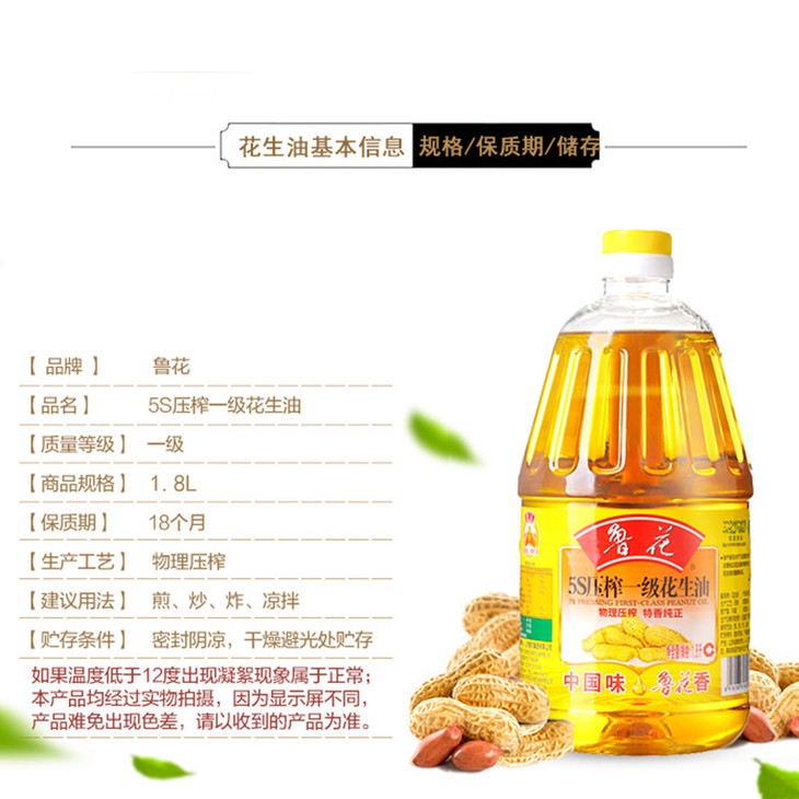 鲁花5S压榨一级花生油 1.8L
