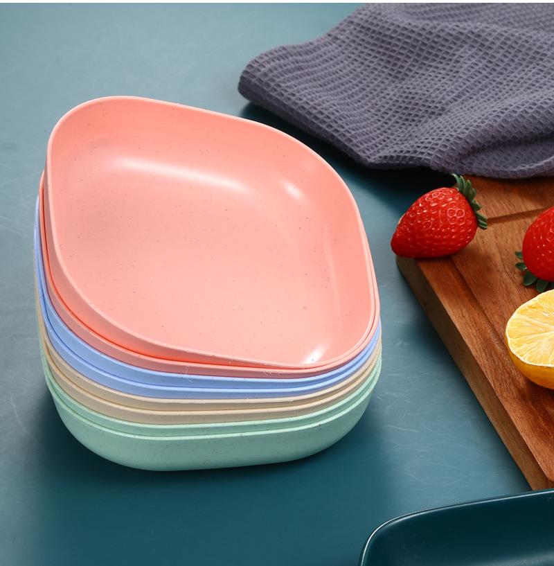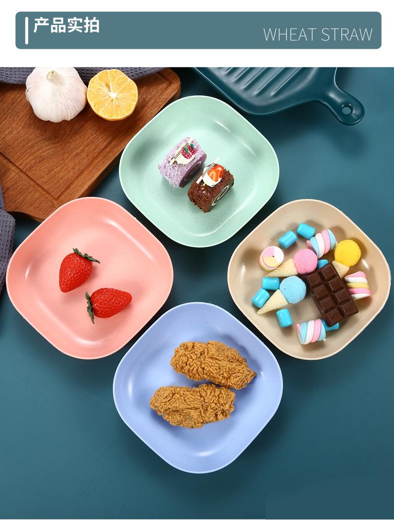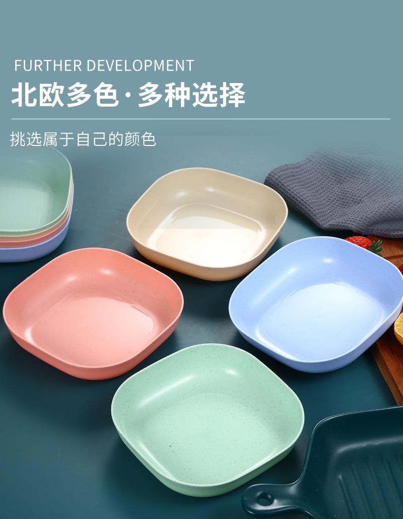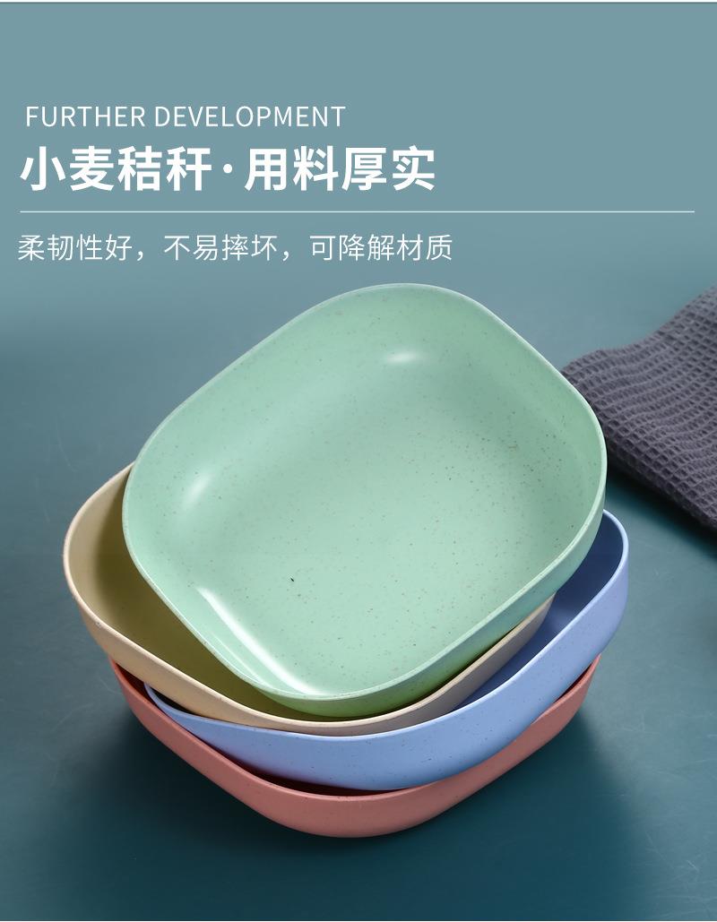 代发带底座家用小麦秸秆吐骨碟水果餐桌垃圾方形加深塑料盘现货