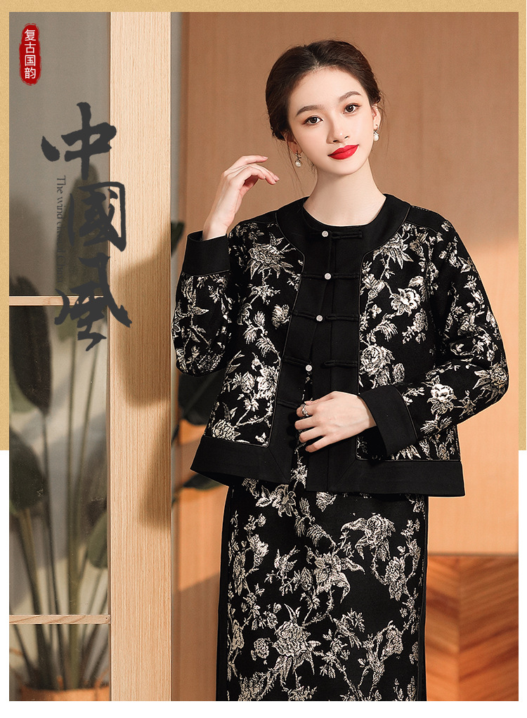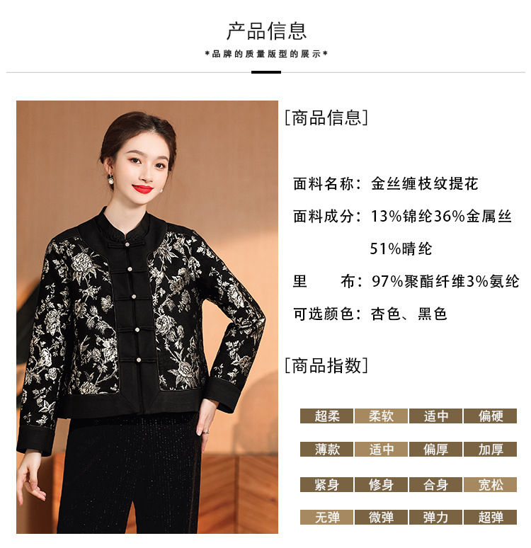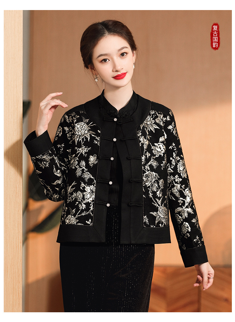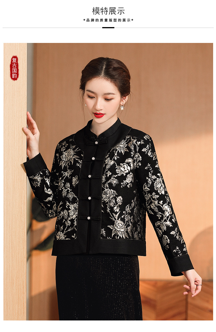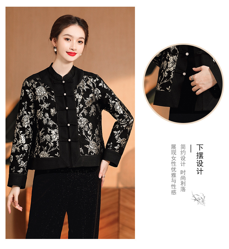 缠枝花纹提花外套,女改良唐装圆领长袖宽松外套女秋冬国风女装AYK-008
