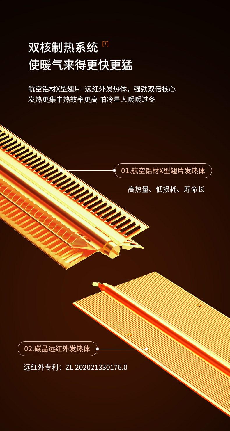 百斯腾火炬系列双制热双散热电暖器H1,双核双效制热
