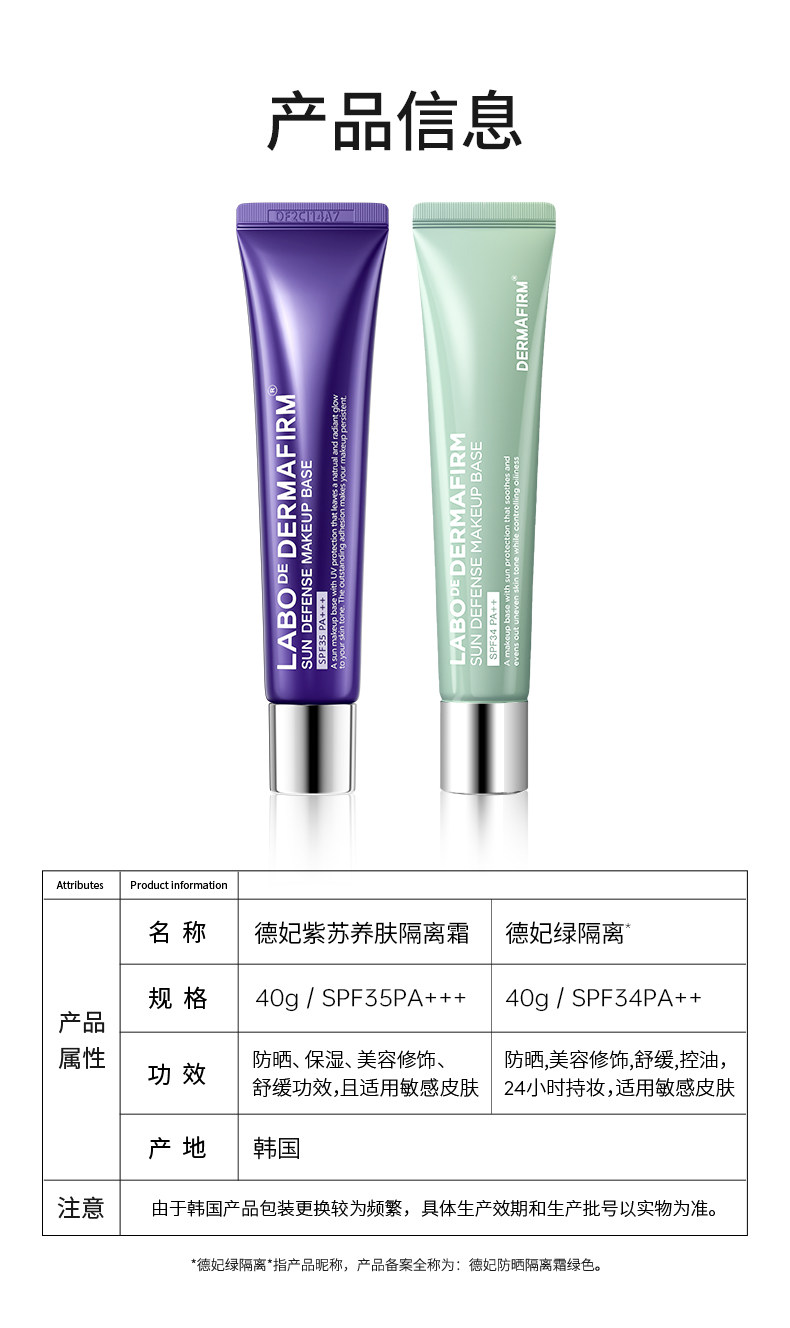 德妃紫苏隔离霜 防晒妆前乳遮瑕二合一干皮素颜霜