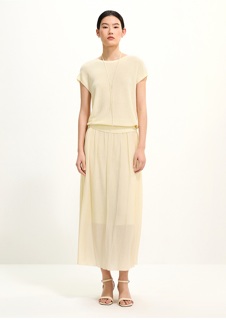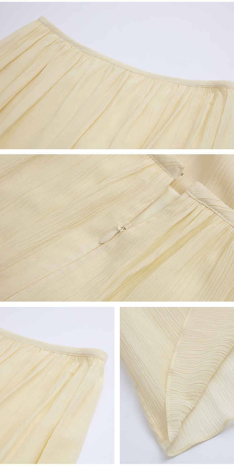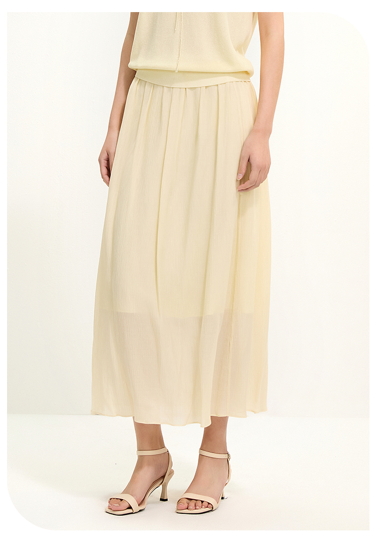 PURE TOUCH米白色松紧腰宽松半身长裙 1350252133