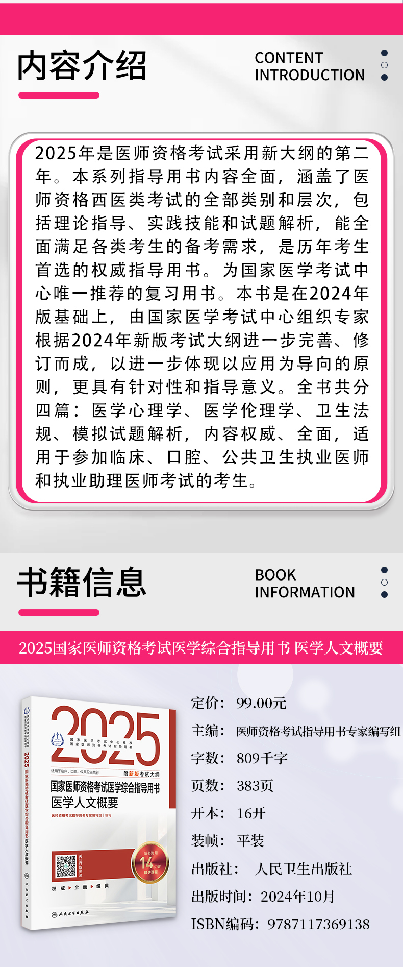 书名:2025国家医师资格考试医学综合指导用书 医学人文概要