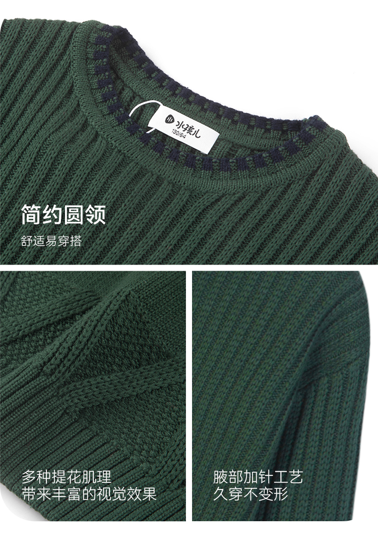 水孩儿童装2024秋冬女童线衣男童毛衣中大童打底圆领时尚百搭宽松