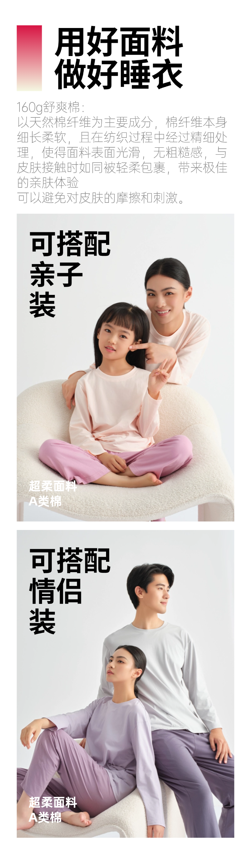 ⁵亲子款【纯色圆领睡衣】大人孩子都能穿 95%舒爽棉+5%氨纶 YY05-QTT-YTHP