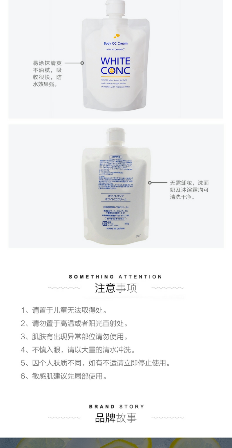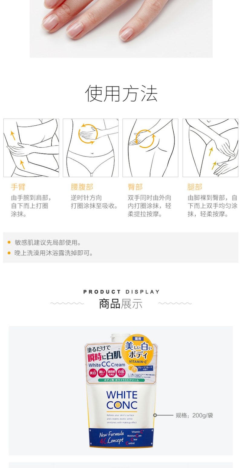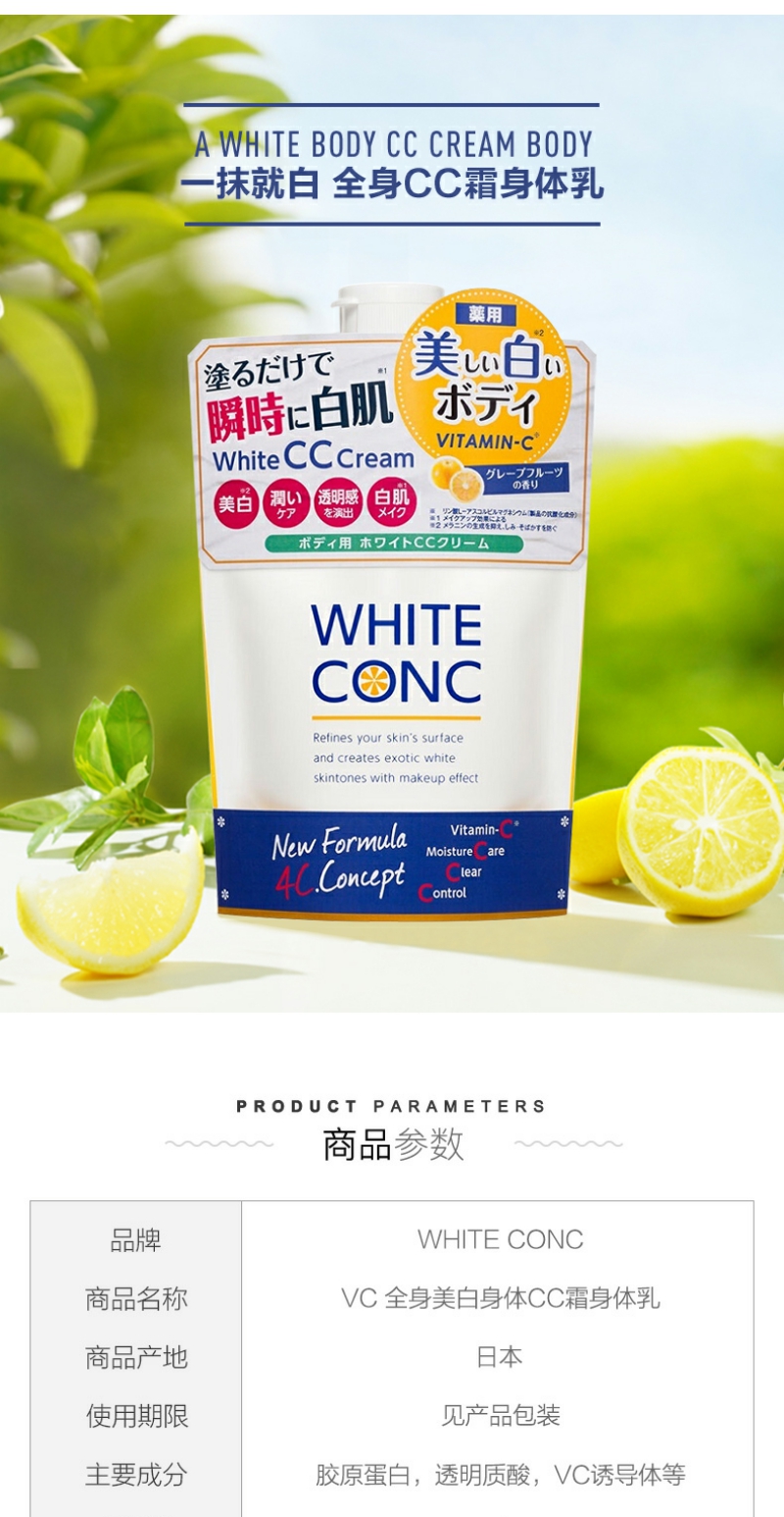【YZ】white concWHITE CONC V美白cc霜维c保湿身体乳vc润肤露200g