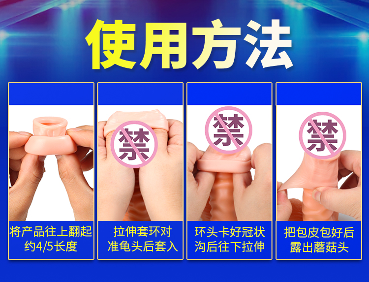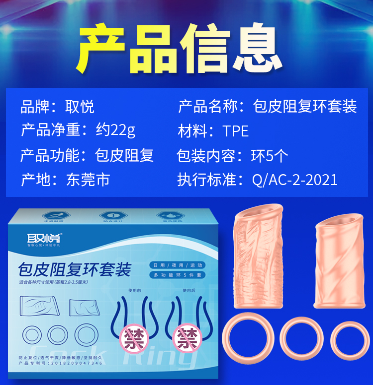 取悦 包皮阻复环日用夜用5件套装 包皮过长凝胶包皮环免切器 男用持久锁精环 成人情趣用品