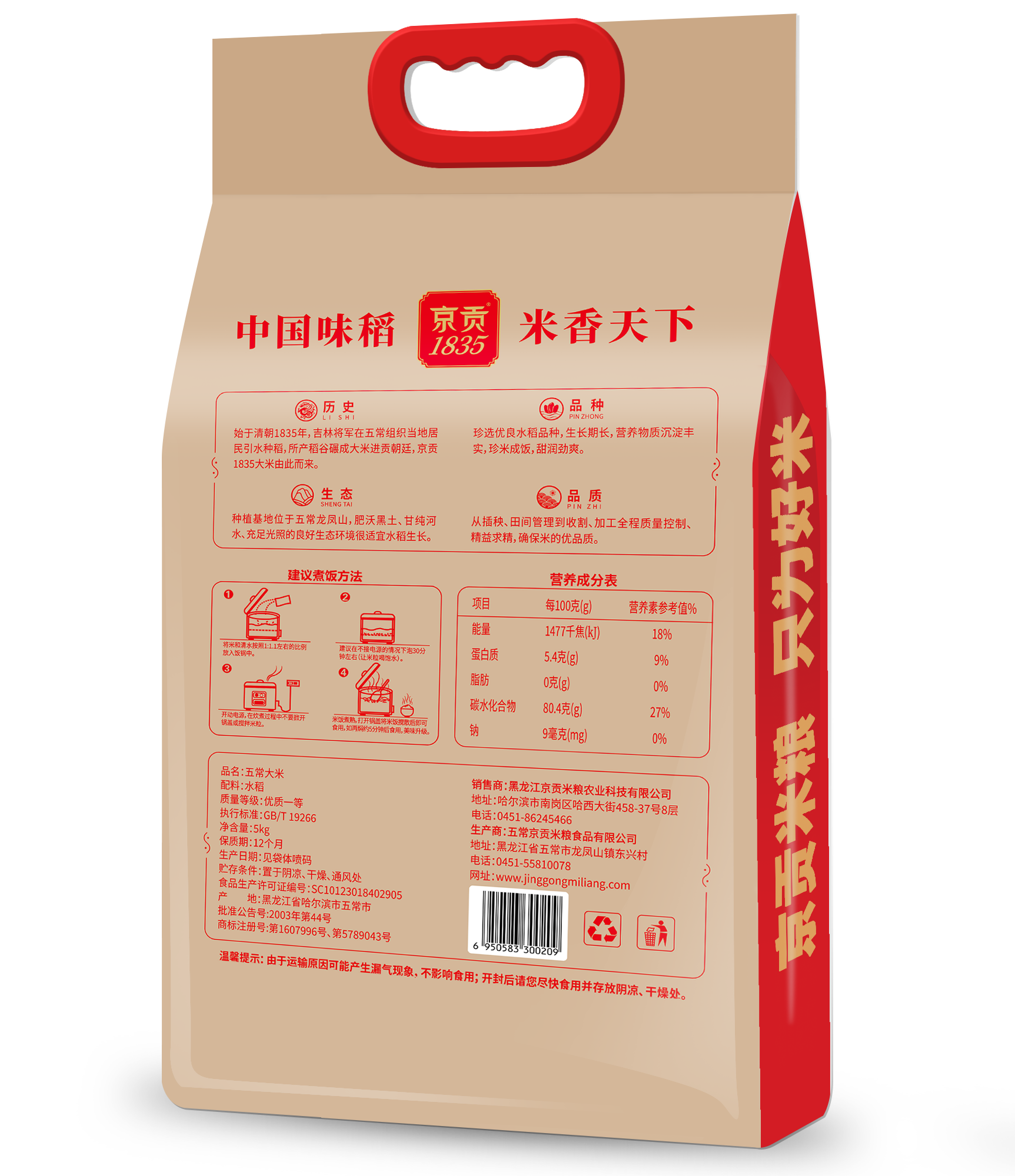 【风味人间】京贡1835五常贡香米5kg袋 纯正保真稻花香2号,绿色种植标准,没有农残,健康好吃