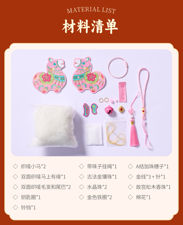 马年新年春节元旦活动织唛马上有福挂件手工diy儿童制作材料装饰