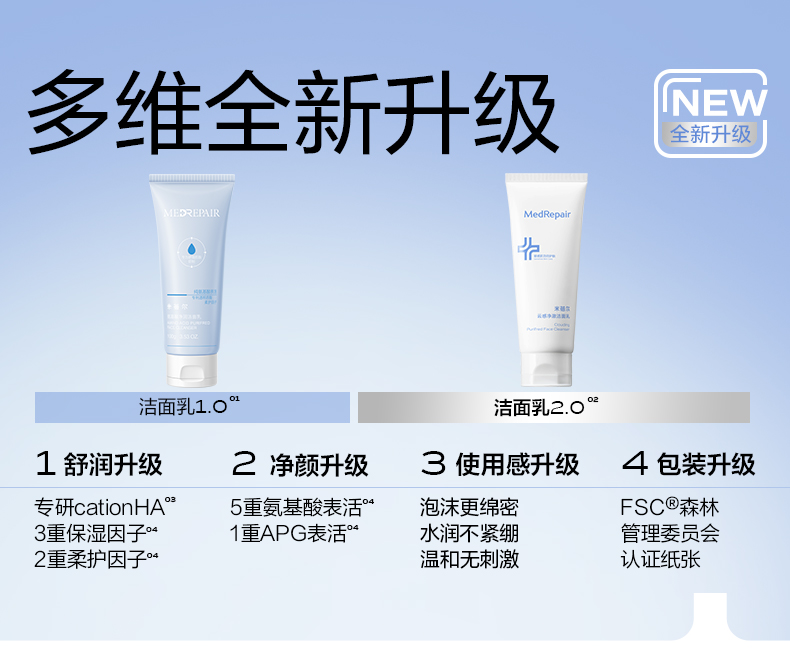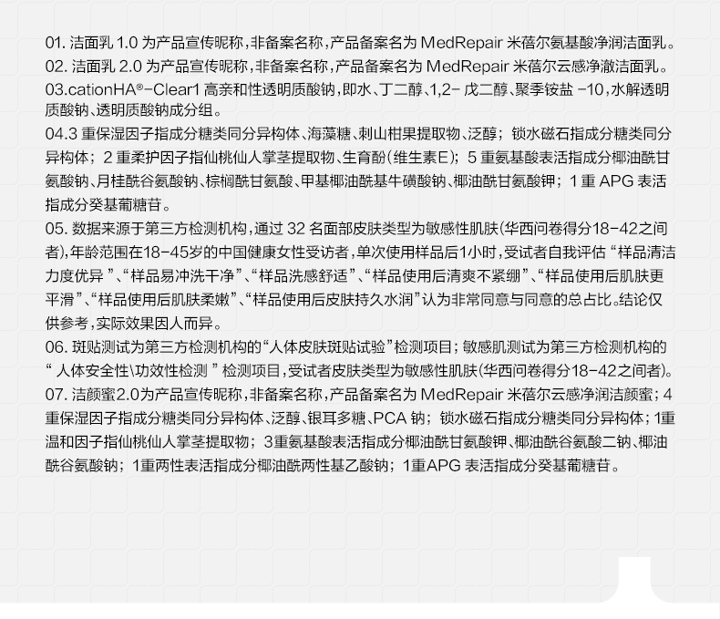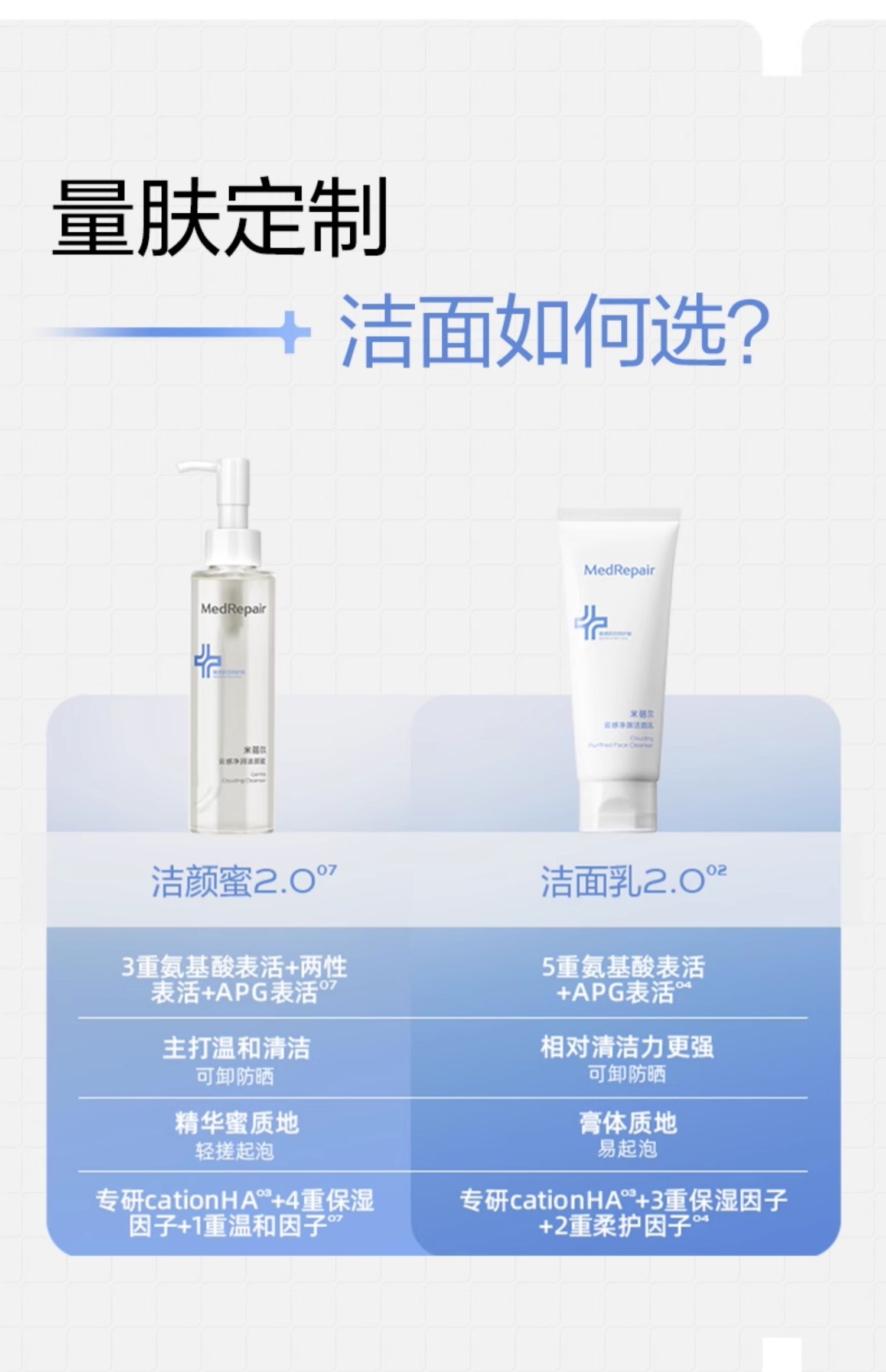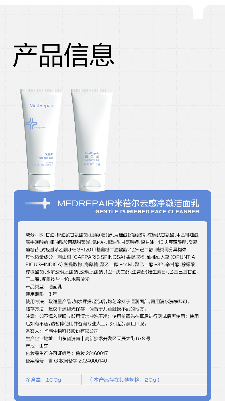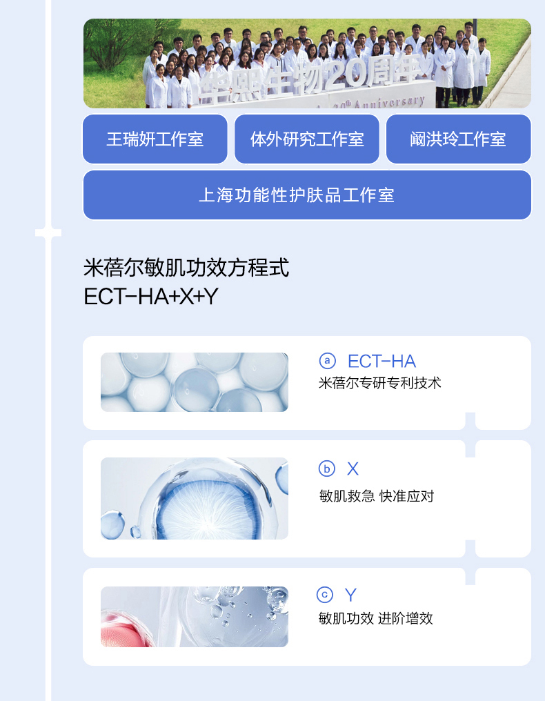 - 华熙生物集团旗下——米蓓尔MEDREPAIR,源自华熙生物多年潜心研发,“精于修复,专注美丽”为消费者解开敏肌密码,4D-HA四重活水创专利配方取代市场主成分,提供解决敏肌问题的方案。