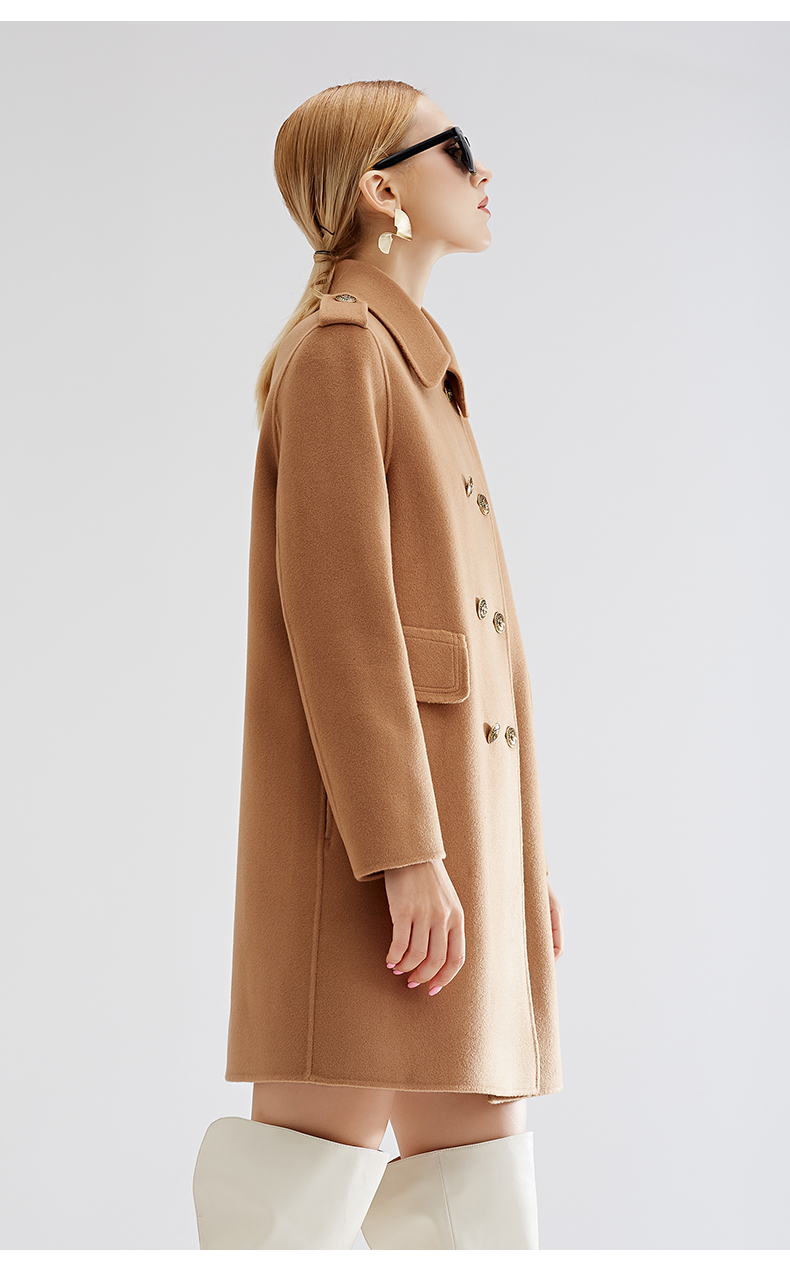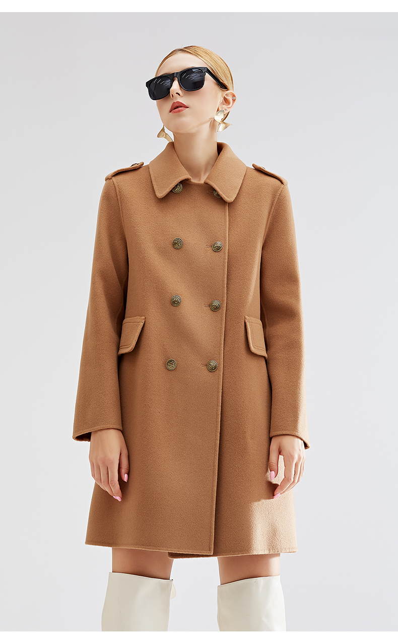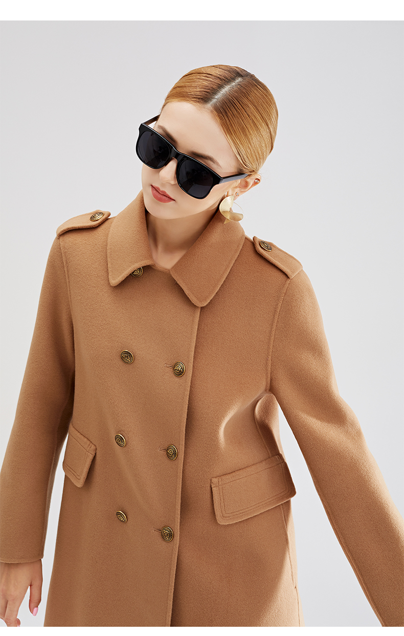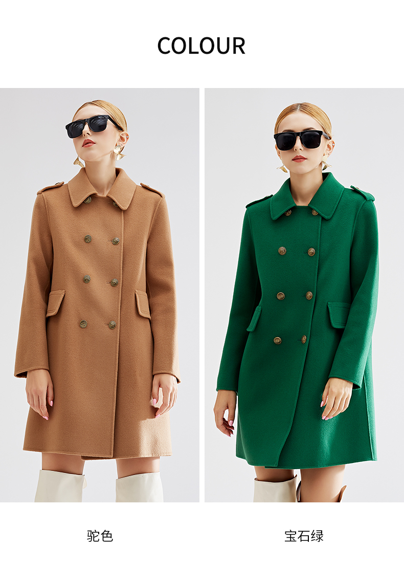 【特价不退换 微瑕款】阿菁娜复古小翻领经典双排扣羊毛羊绒混纺H型爆款热卖大衣A27D211032
