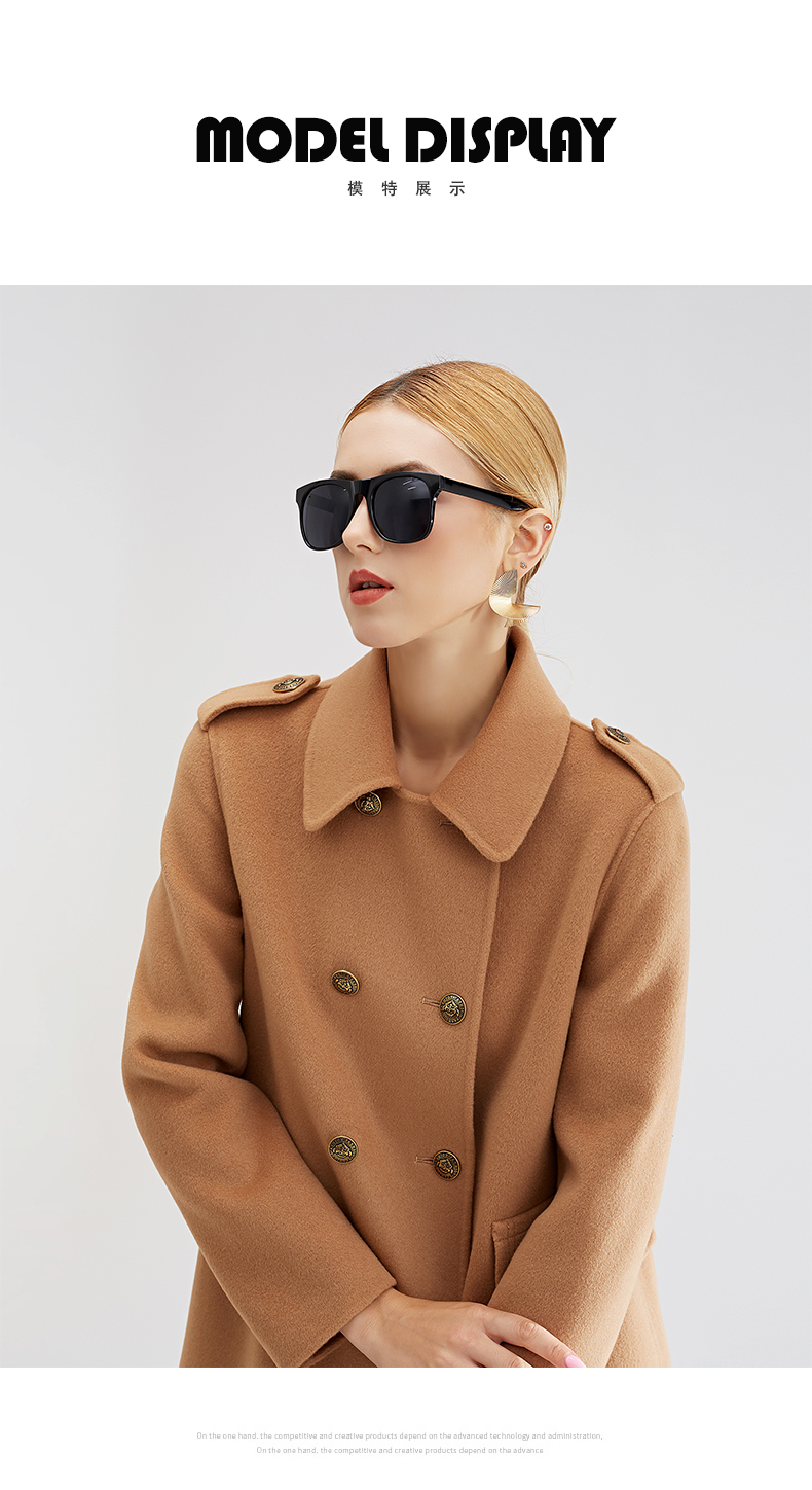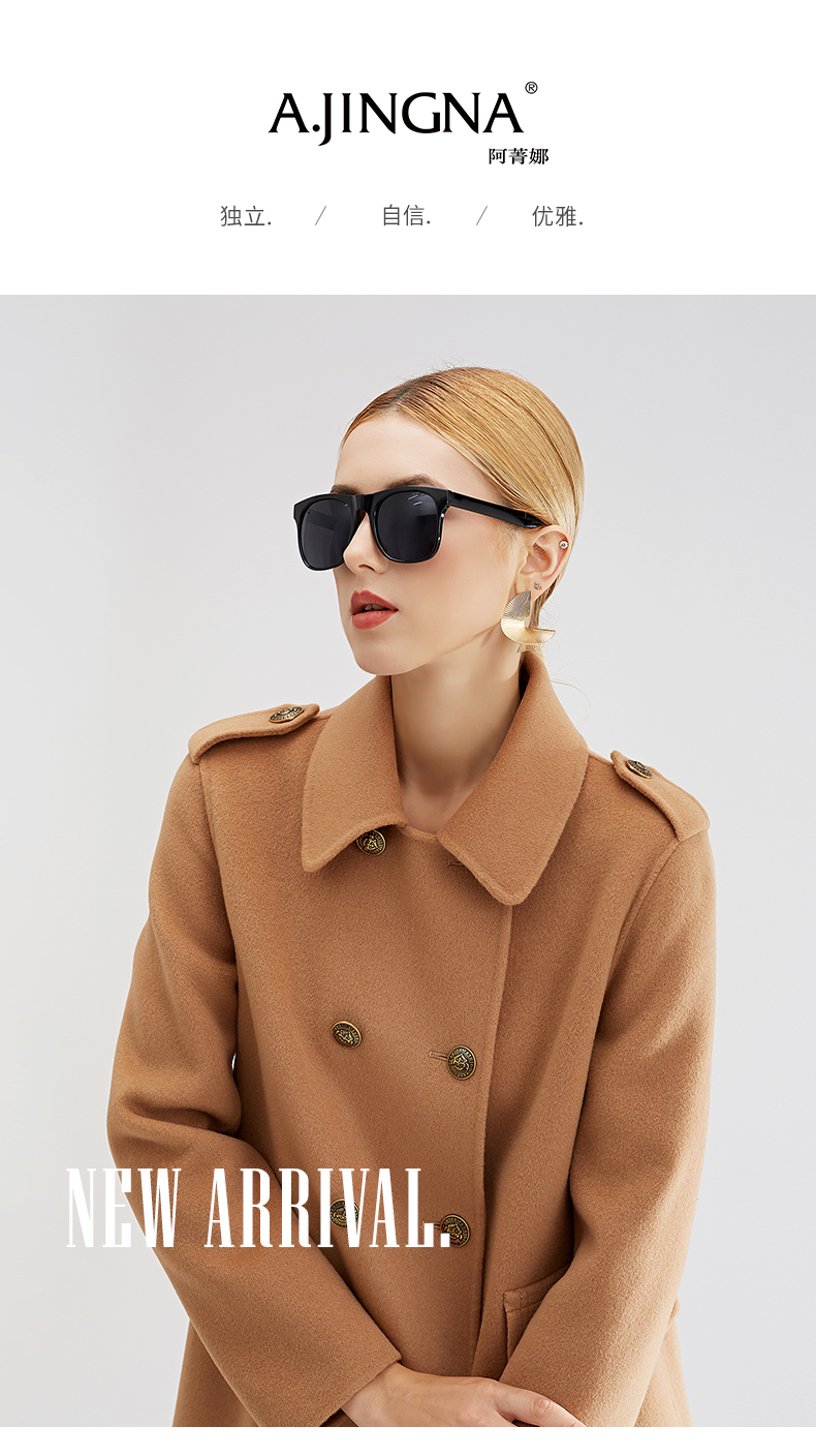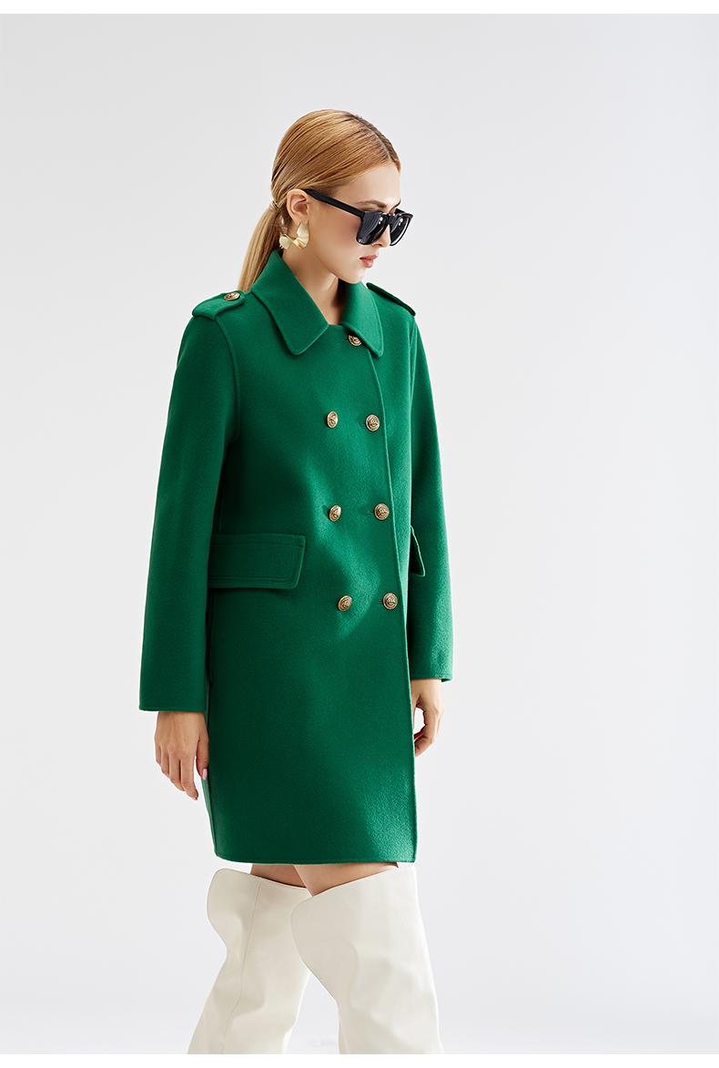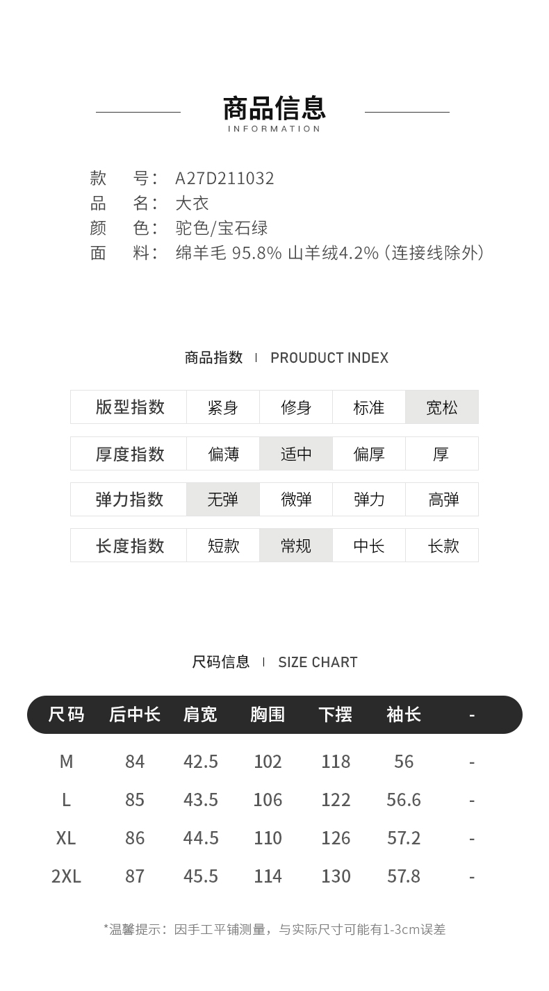 【特价不退换 微瑕款】阿菁娜复古小翻领经典双排扣羊毛羊绒混纺H型爆款热卖大衣A27D211032