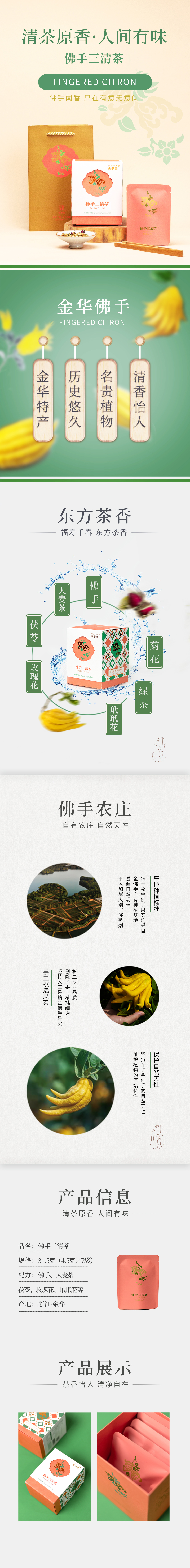 金手宝茶饮东方茶韵佛手三清茶佛手玫瑰花茯苓组合花茶