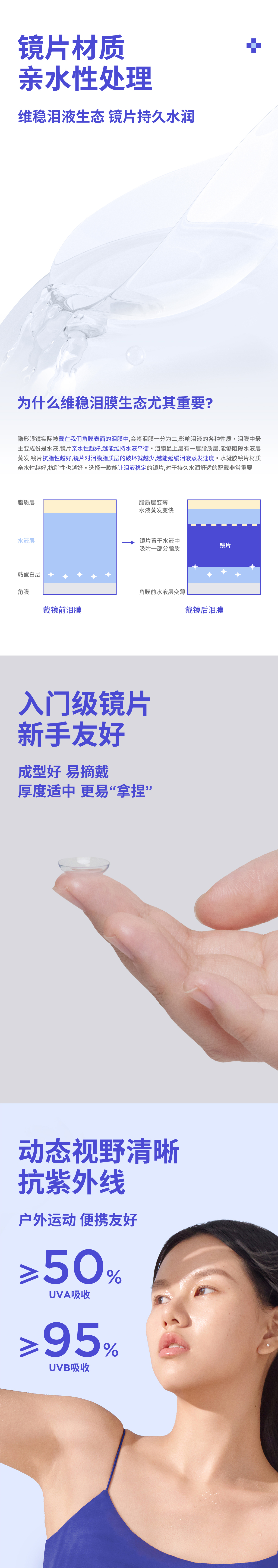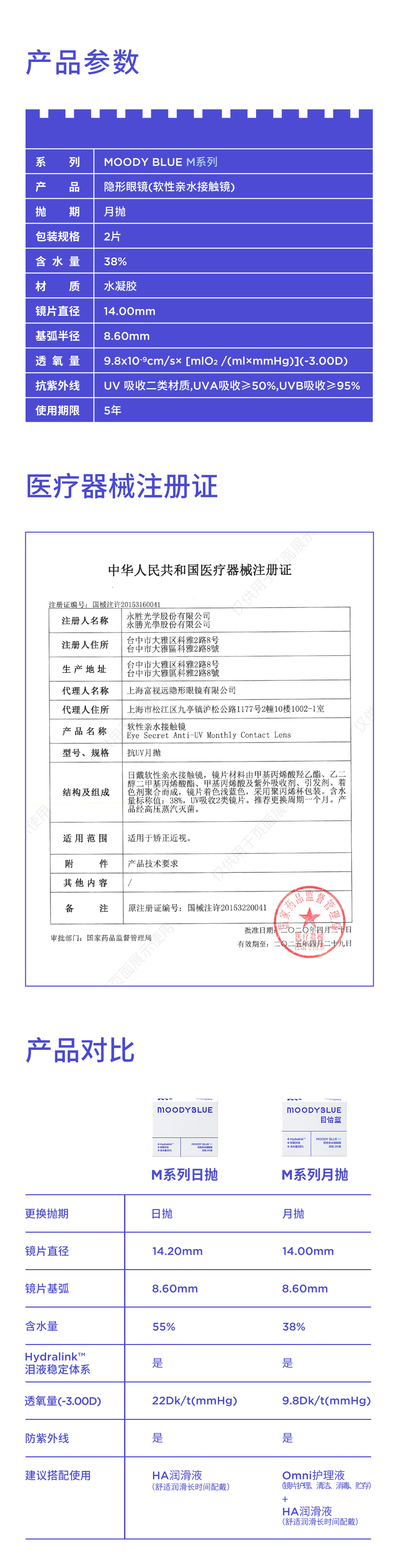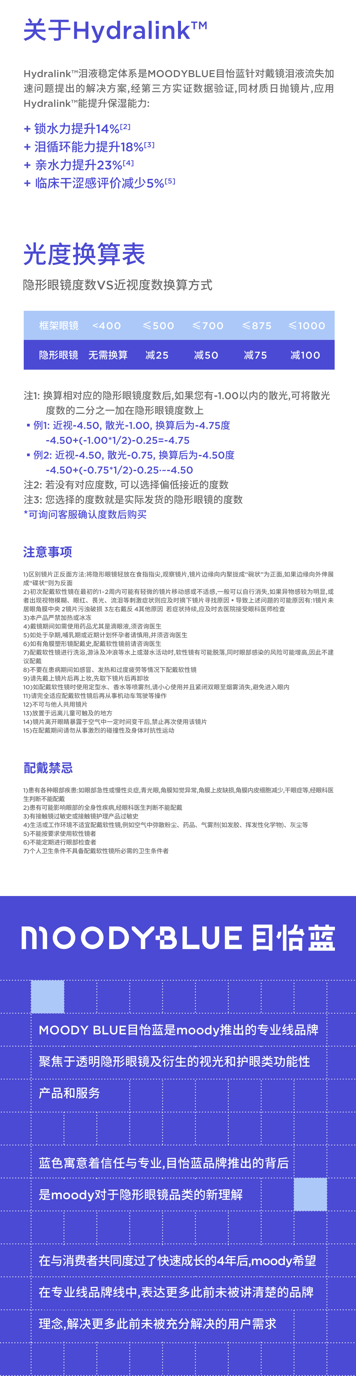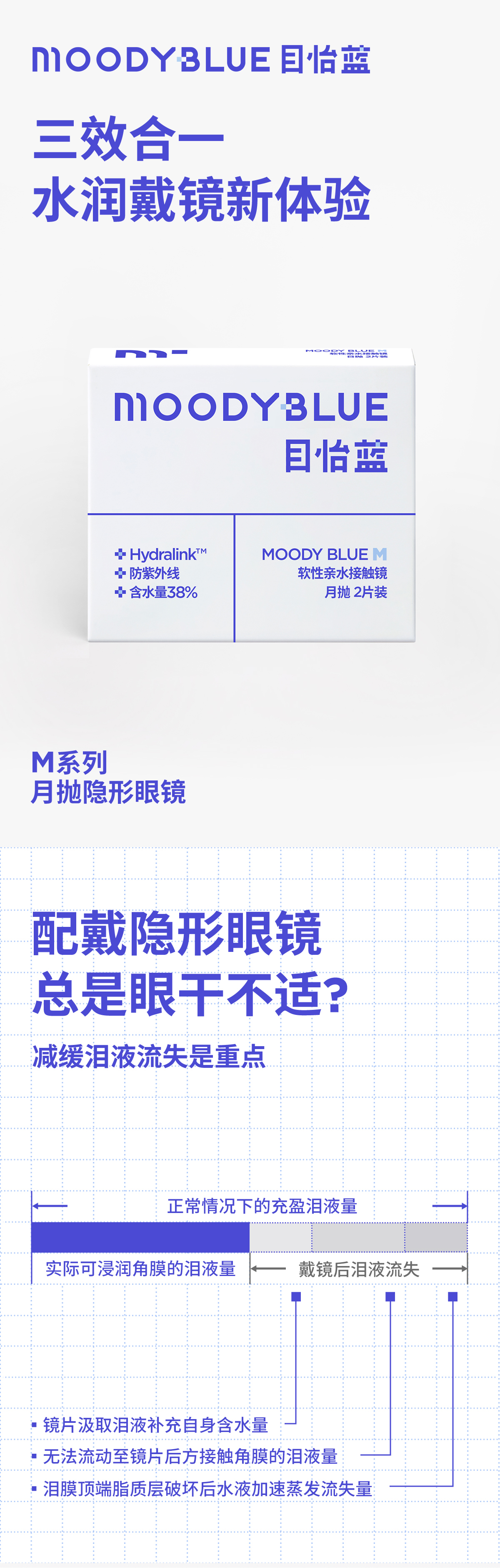MOODYBLUE隐形眼镜月抛2片舒适水润透氧水凝胶镜片