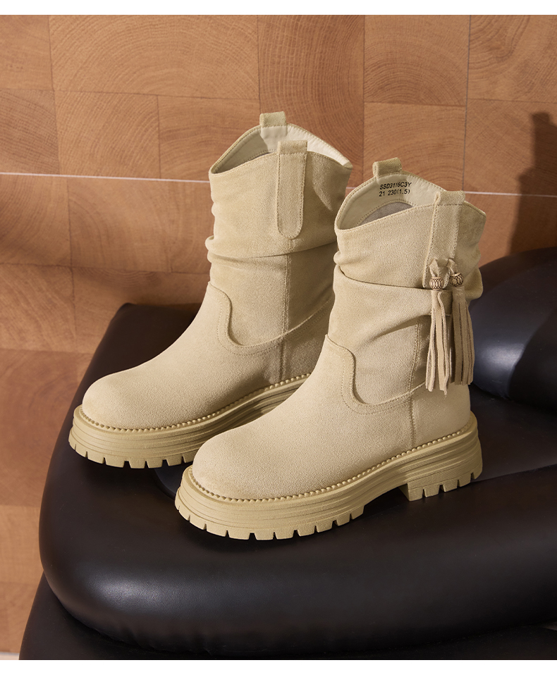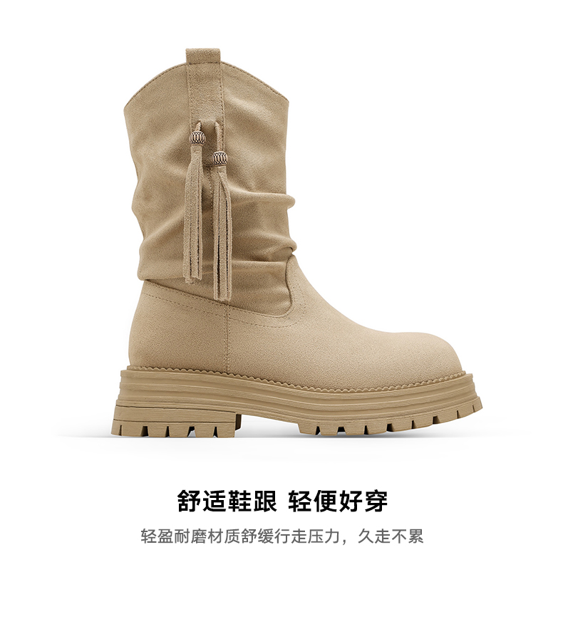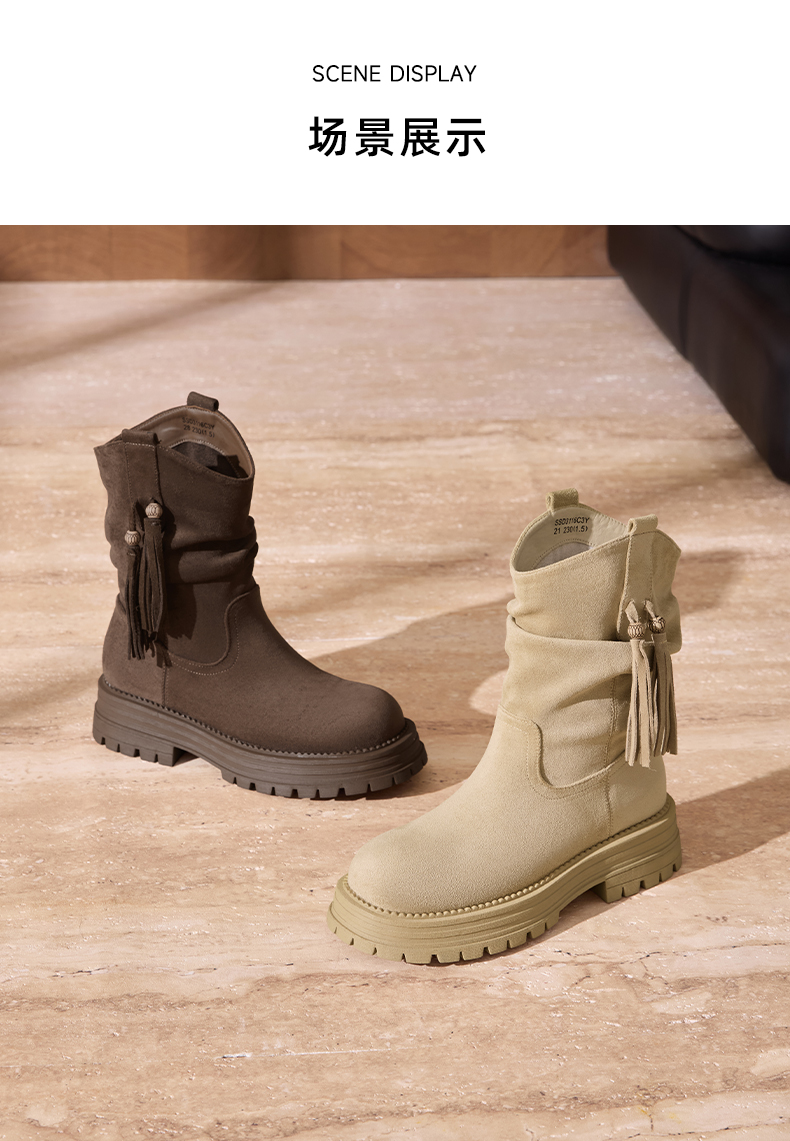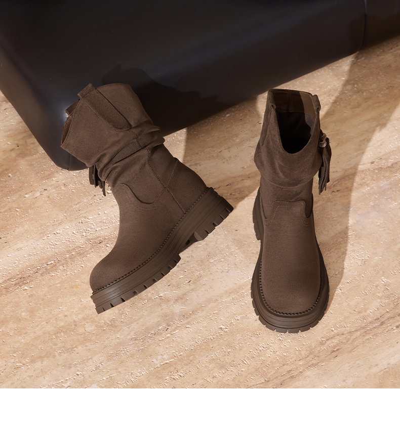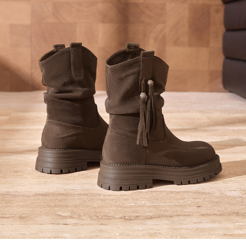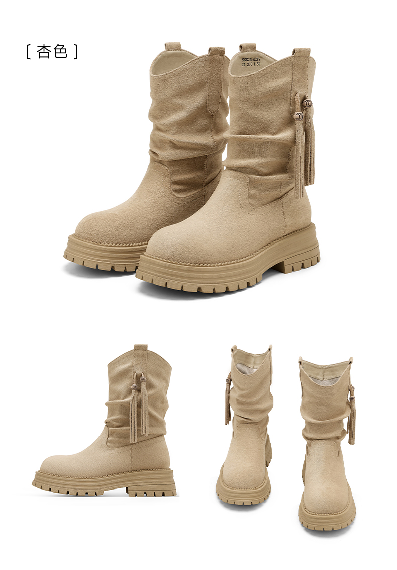 星期六舒适圆头复古流苏堆堆靴SSD3116C3Y