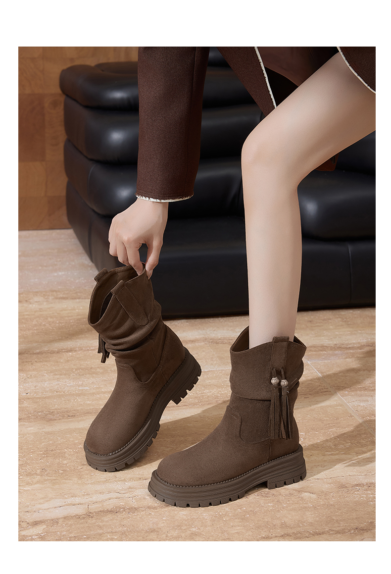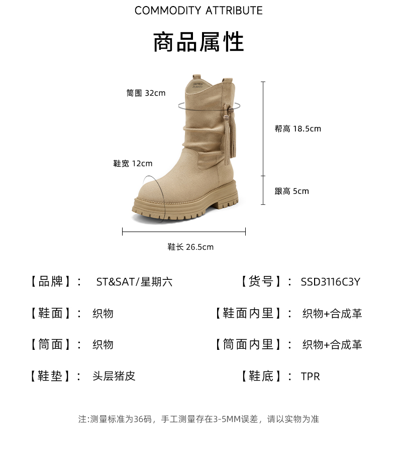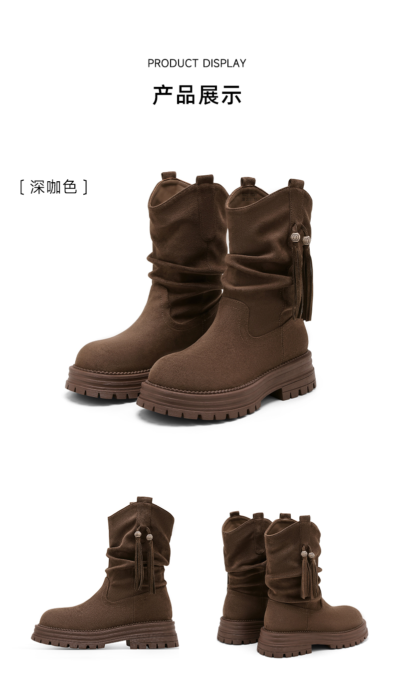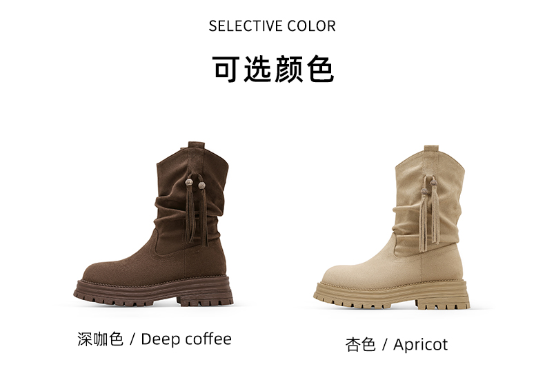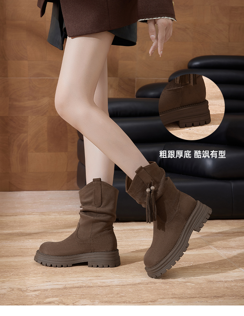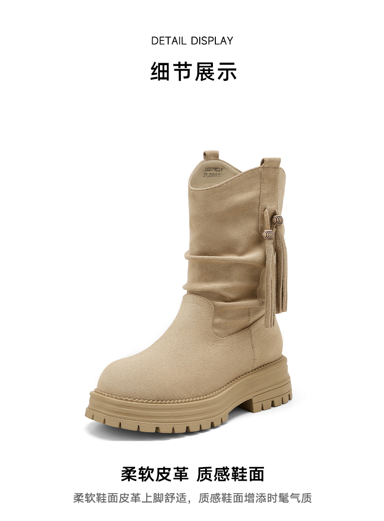 星期六舒适圆头复古流苏堆堆靴SSD3116C3Y