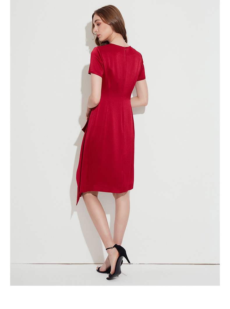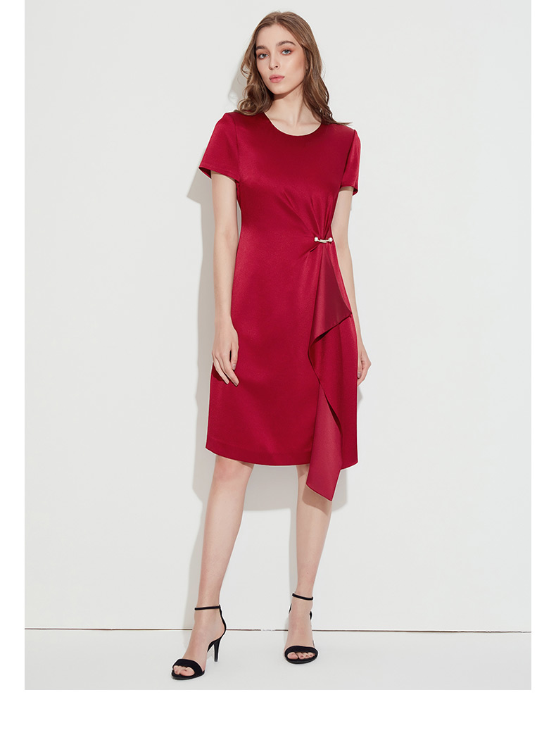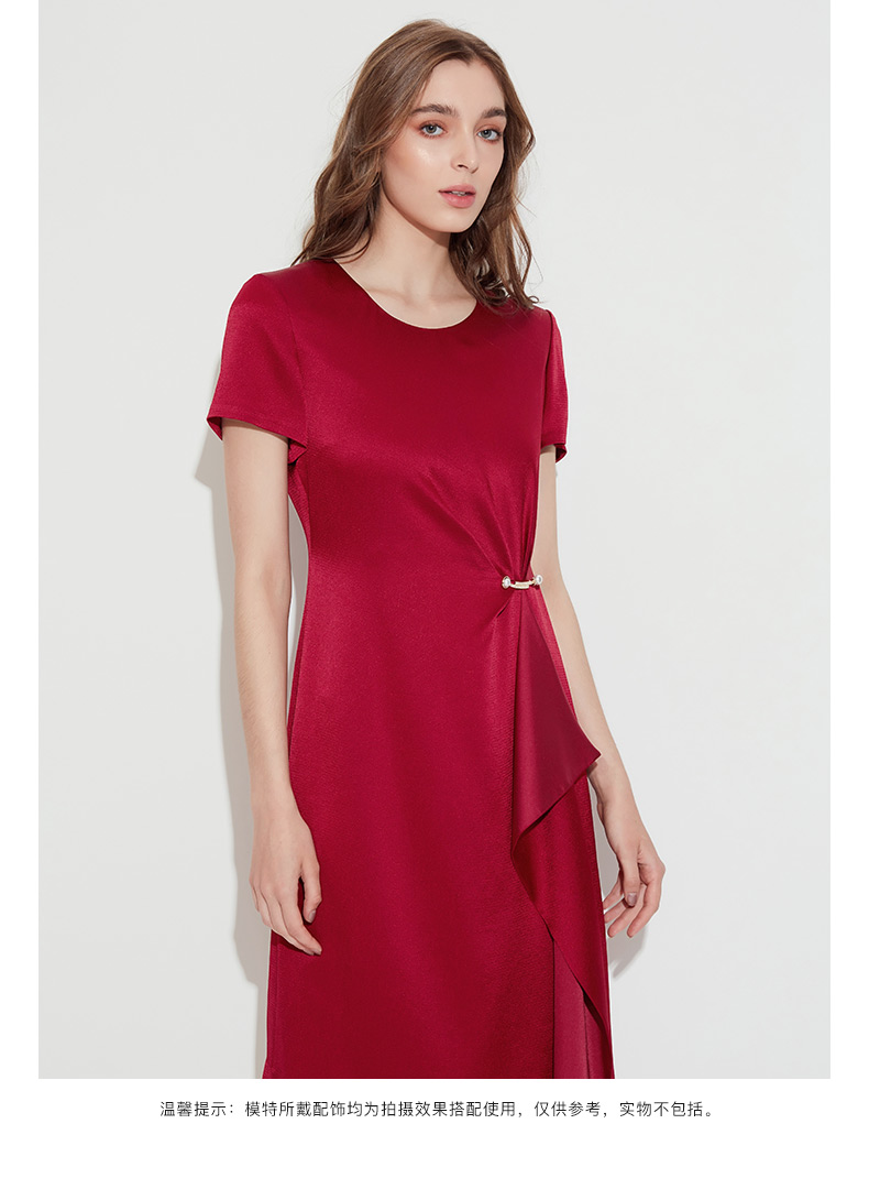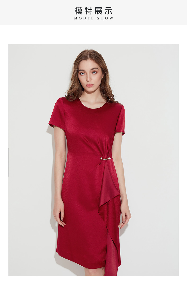 皮尔卡丹女装时尚缎面褶皱收腰通勤宴会礼服连衣裙P1209D1018R5