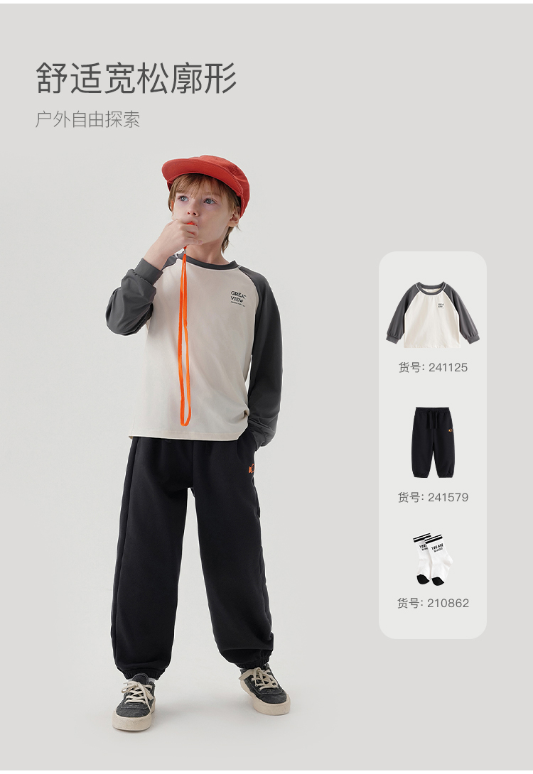【山系户外】马克珍妮男女童宽松运动裤束脚裤 童装春秋款241579