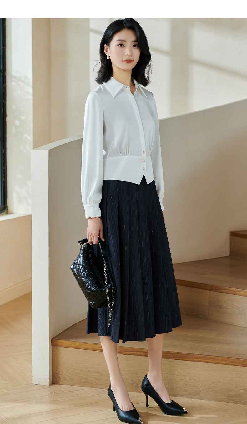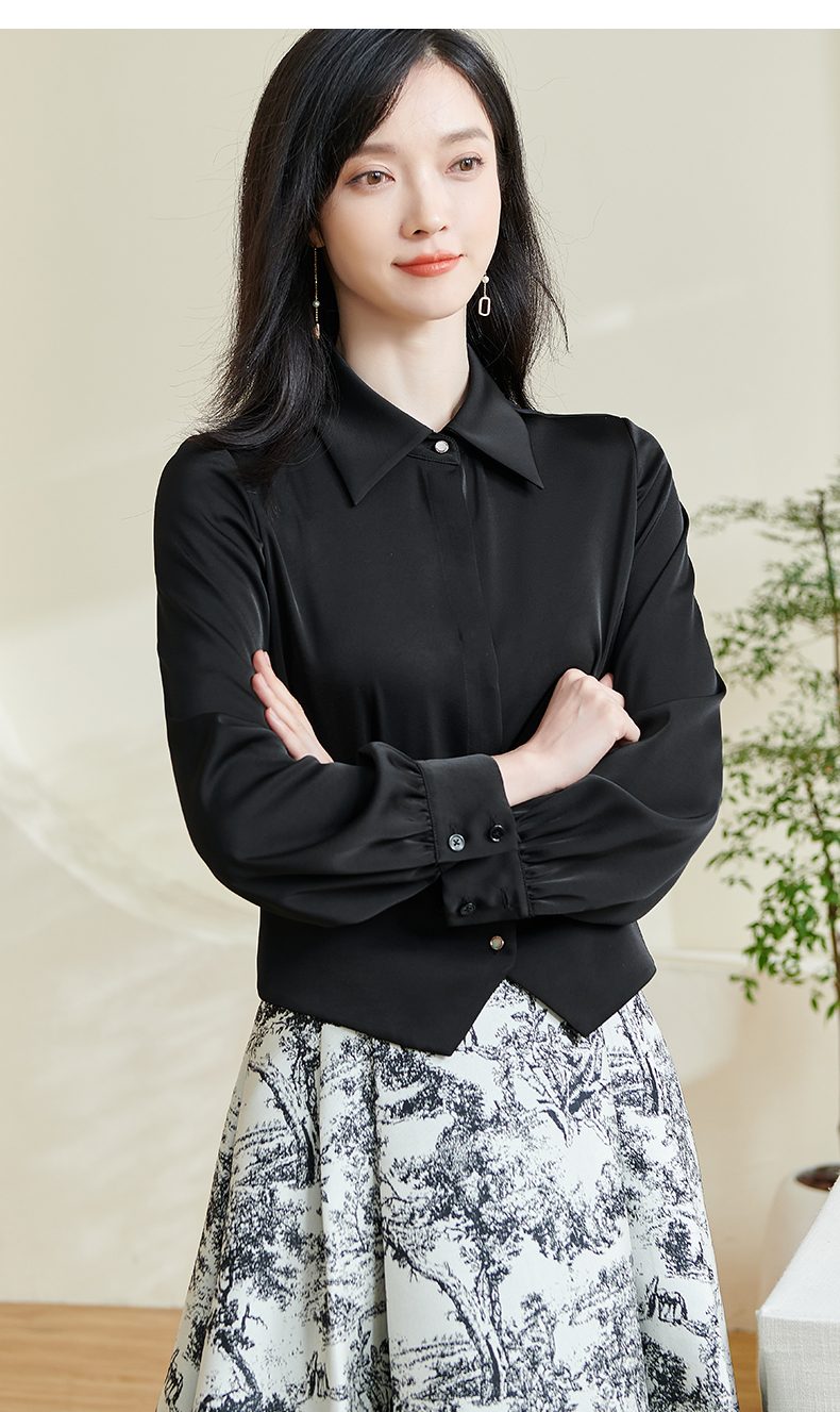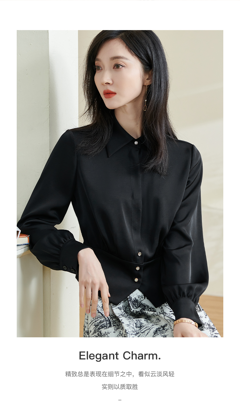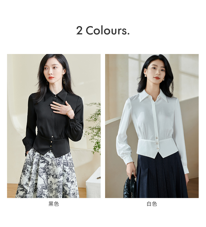 缎面垂坠质感 + 腰腹抽褶设计的「通勤显瘦神器」米思阳2026春季新款法式气质收腰纯色衬衫修身翻领设计感上衣0089