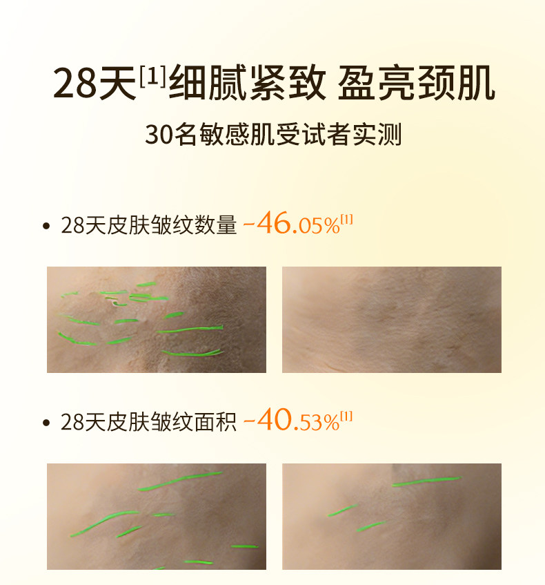 搭起“I型胶原钢架+III型胶原弹簧” 再用水解胶原锁牢胶原不流失 深层填补充撑颈部肌肤,30人实测14天颈纹就隐褪,淡纹是真硬核!