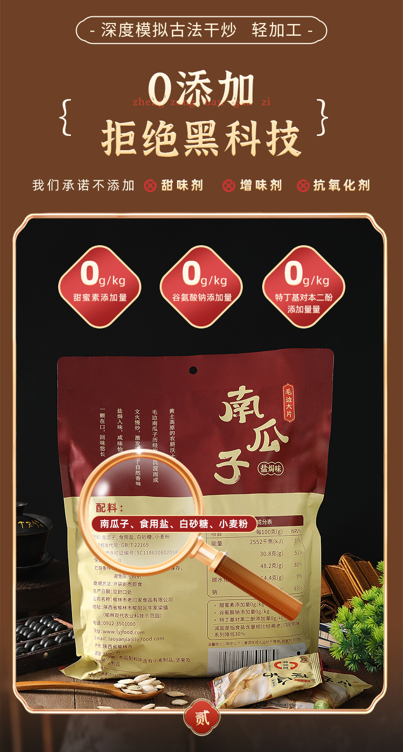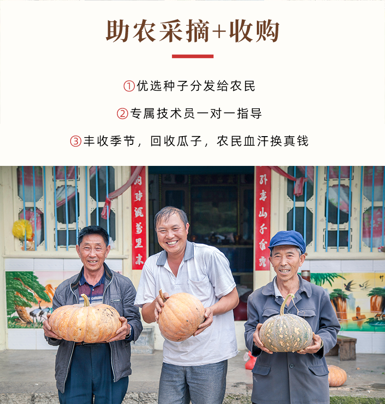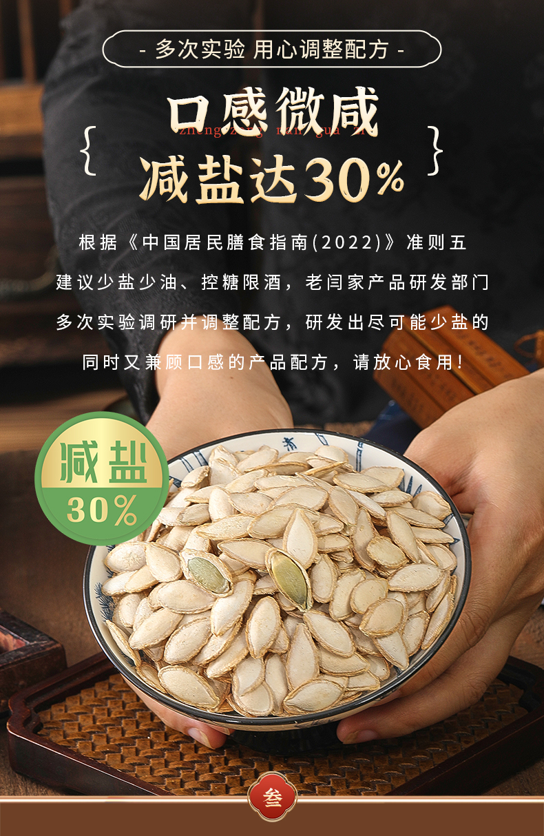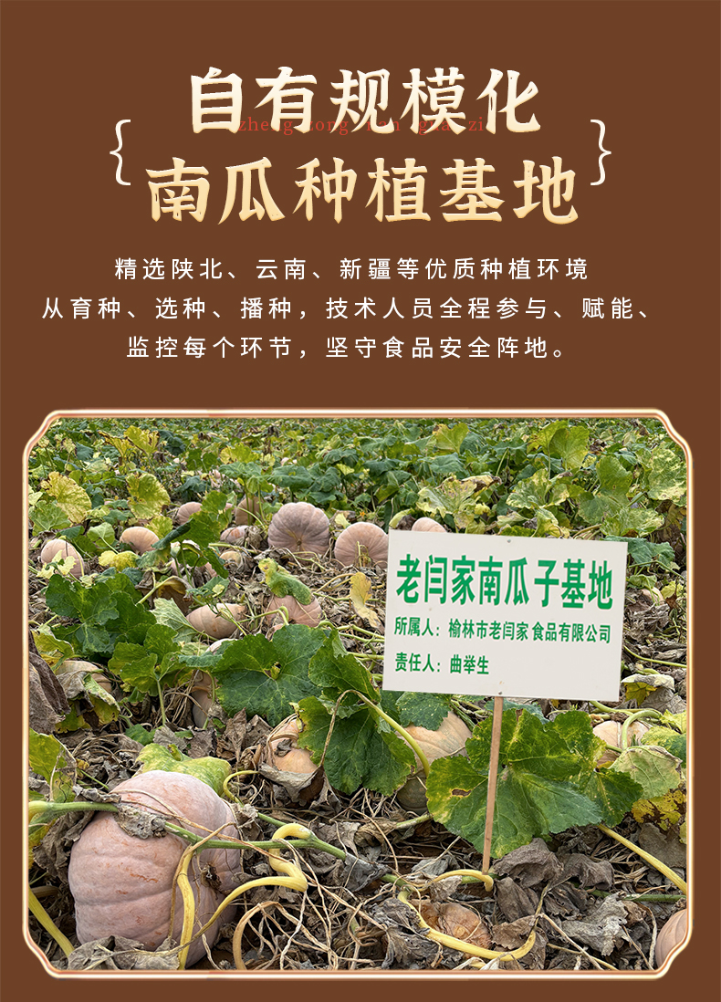 老闫家南瓜子三代人用心坚守每一颗南瓜子执行同一个标准,严选产区,15道工序,坚持古法炒制10次,层层质检严控,只为每一颗好南瓜子。