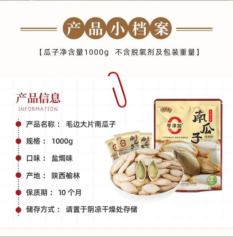 老闫家精选减盐毛边大片南瓜子1000g独立小袋包装