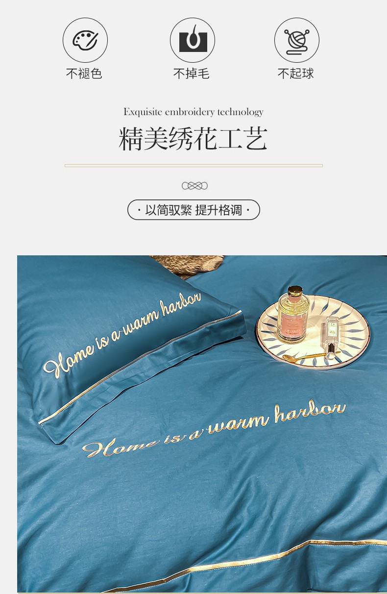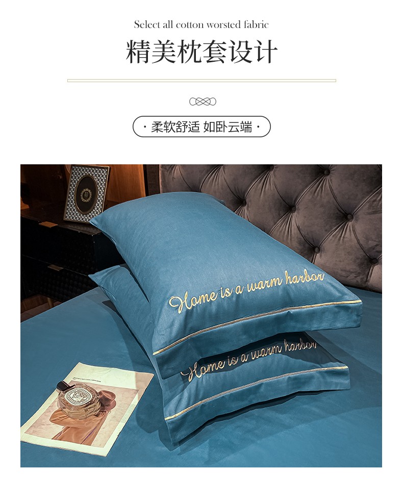无印良品60s贡缎长绒棉全棉四件套-星空蓝 床笠款