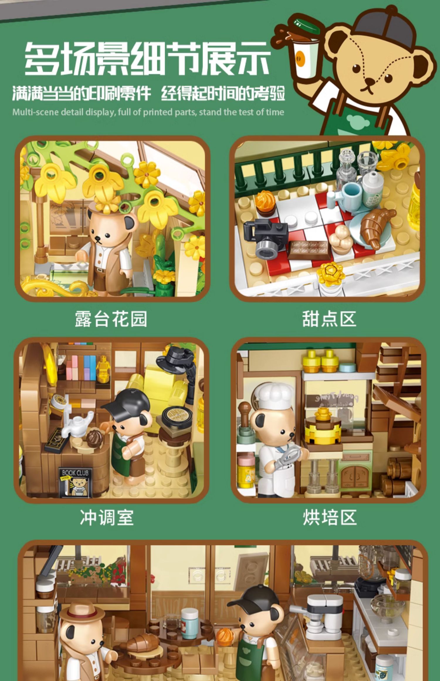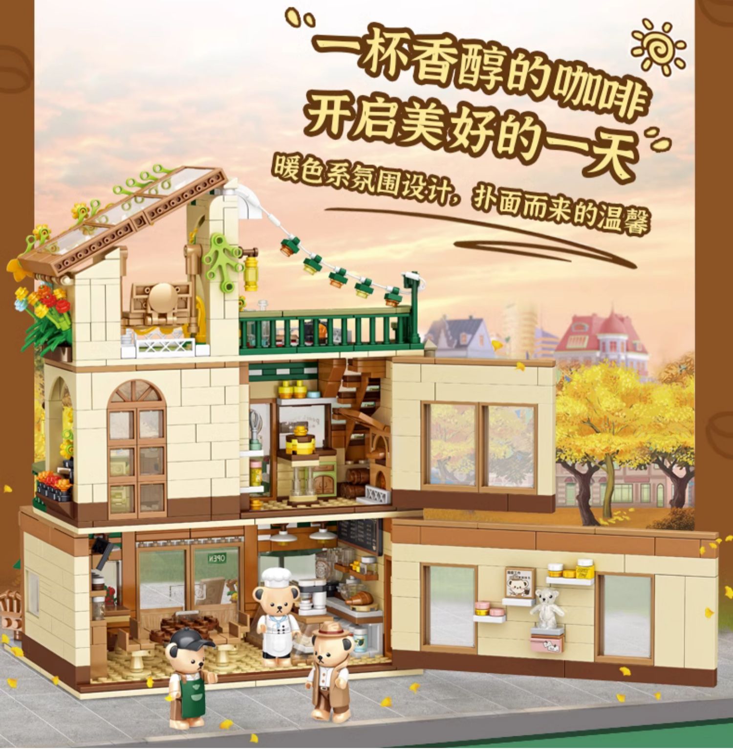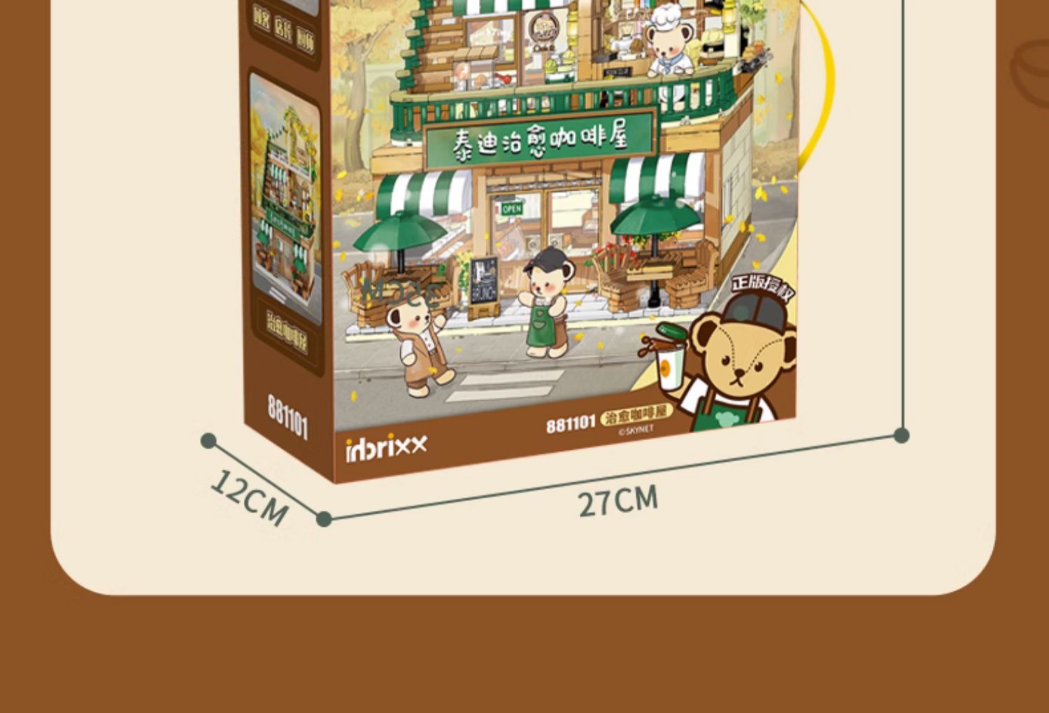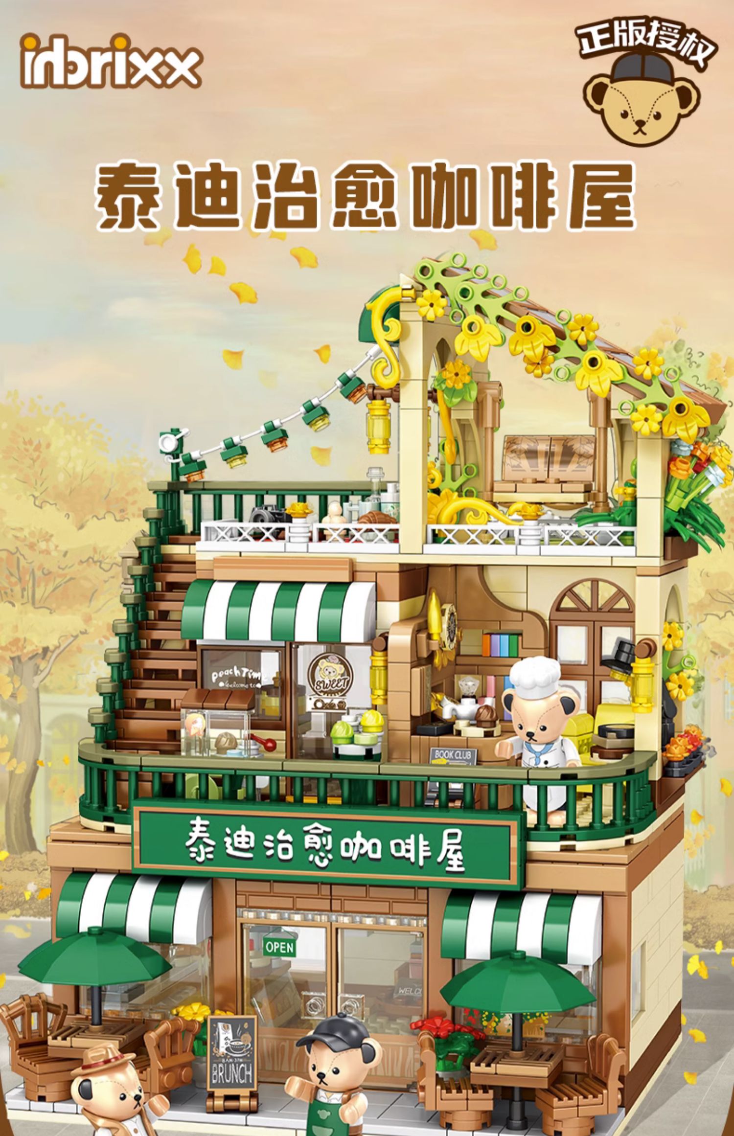 泰迪熊正版授权治愈咖啡屋小颗粒拼装积木摆件模型潘洛斯