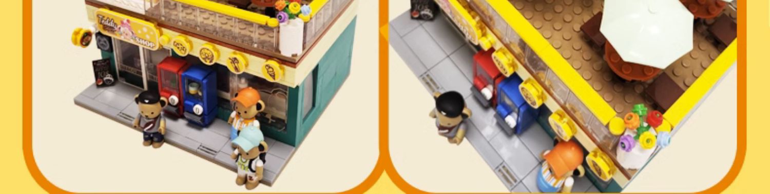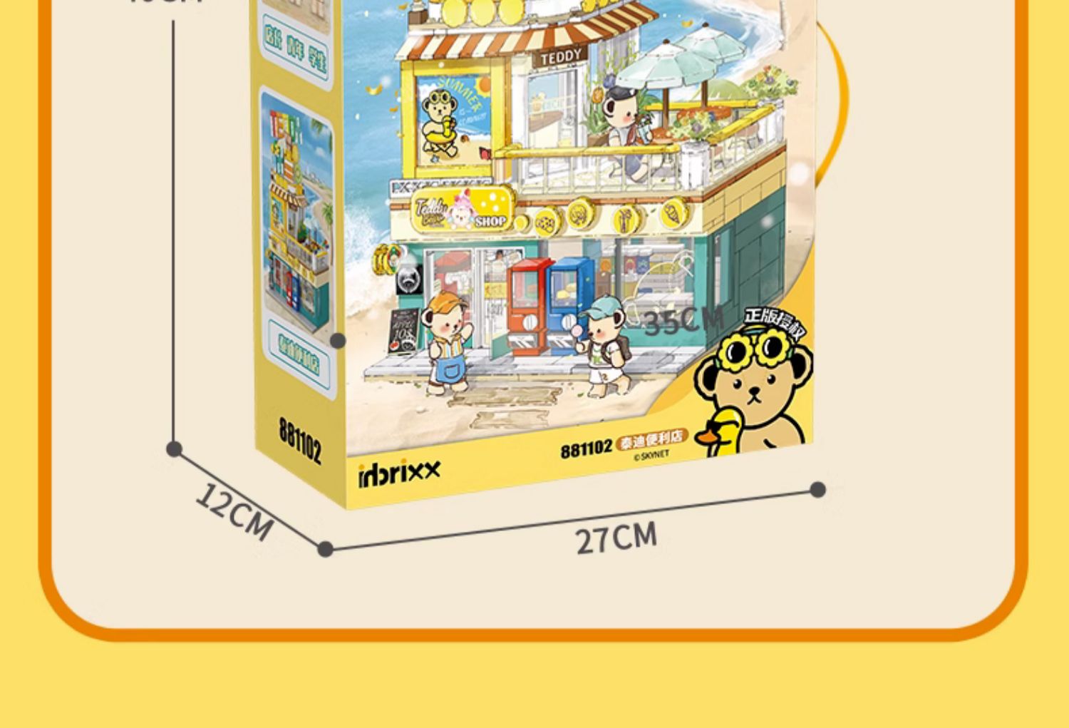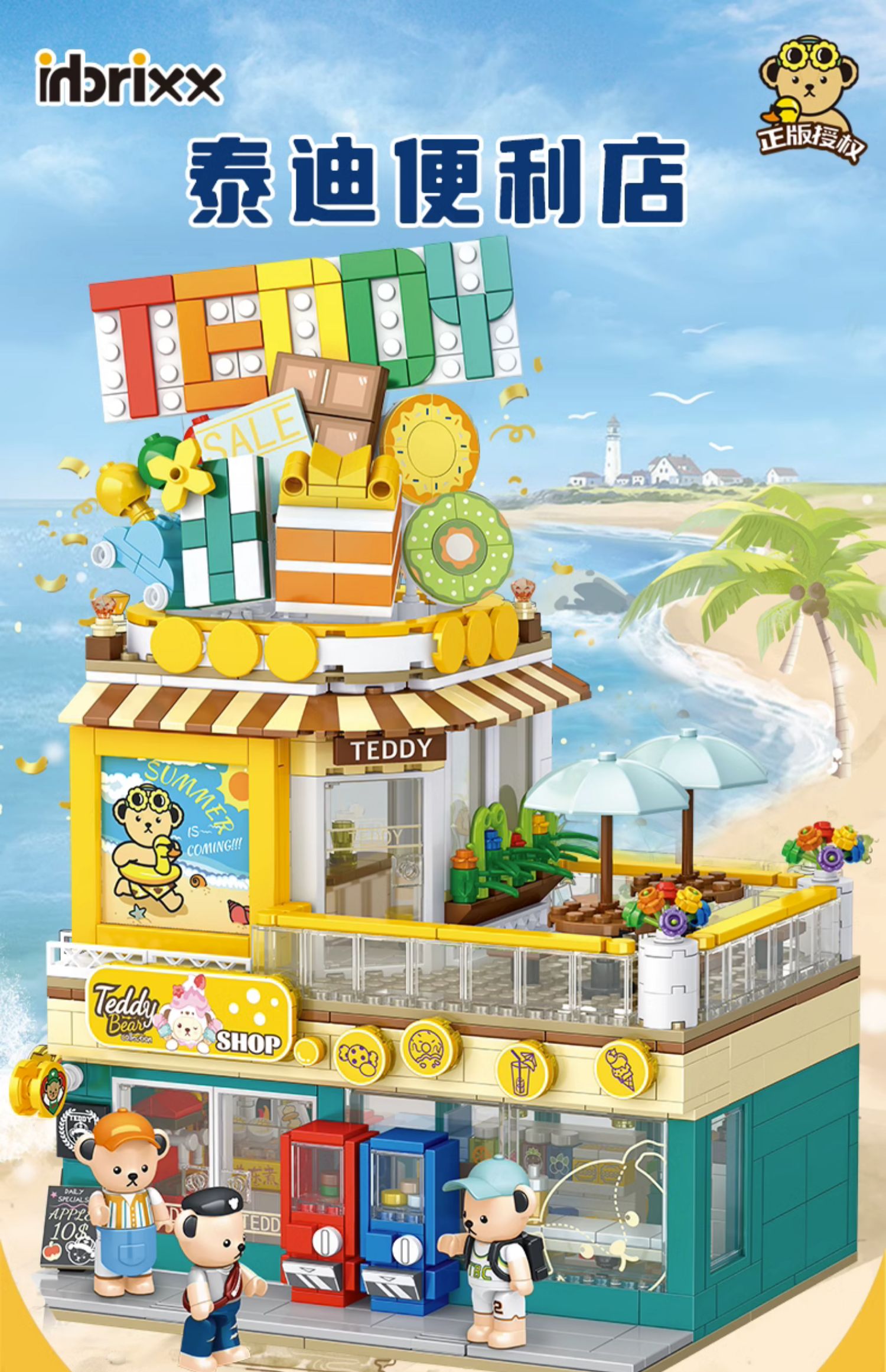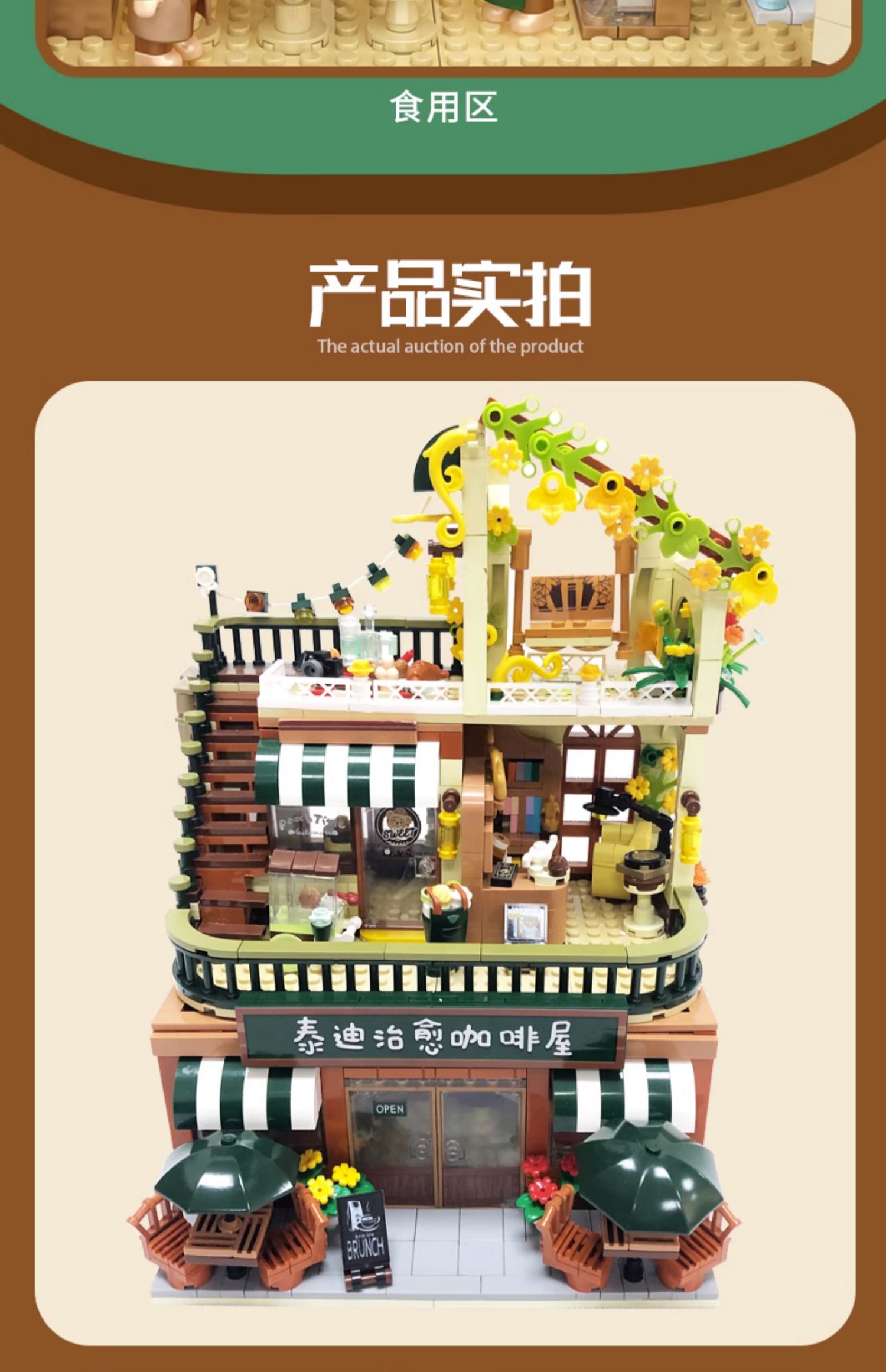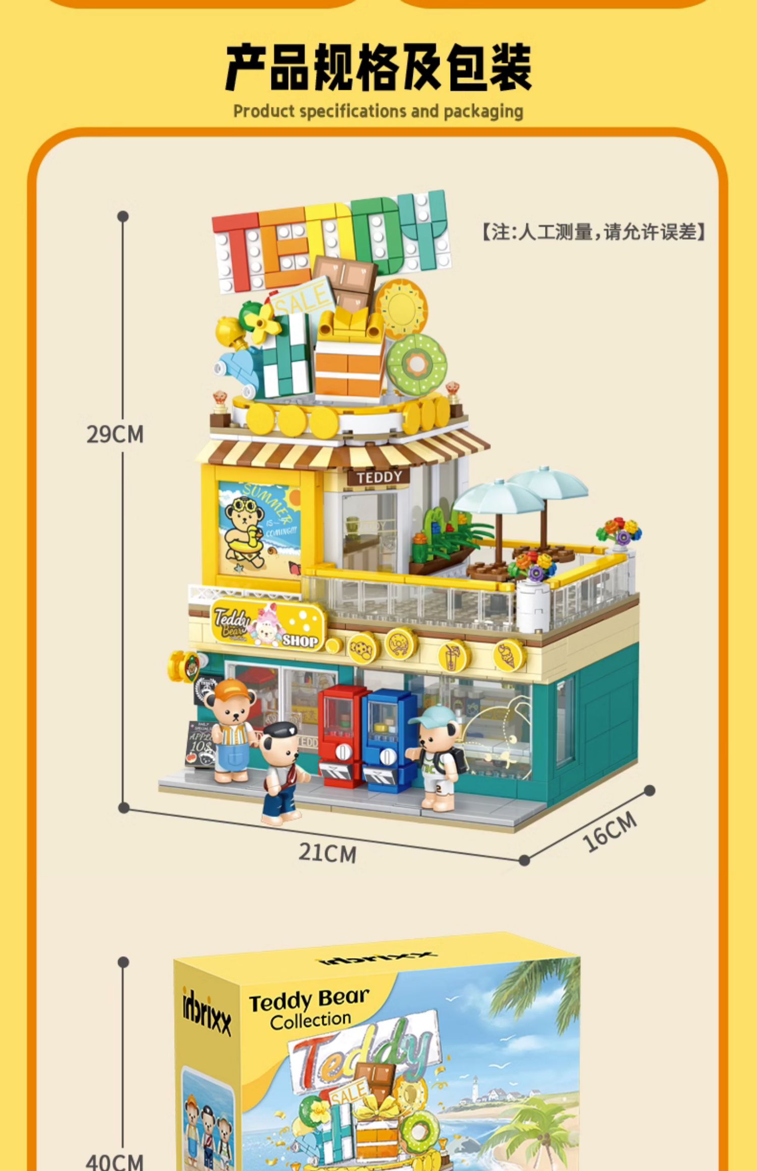 泰迪熊正版授权治愈咖啡屋小颗粒拼装积木摆件模型潘洛斯