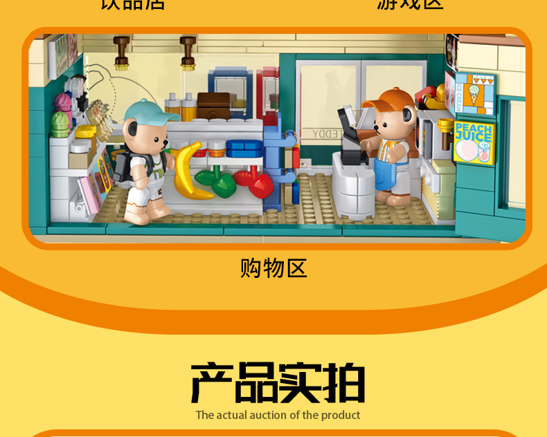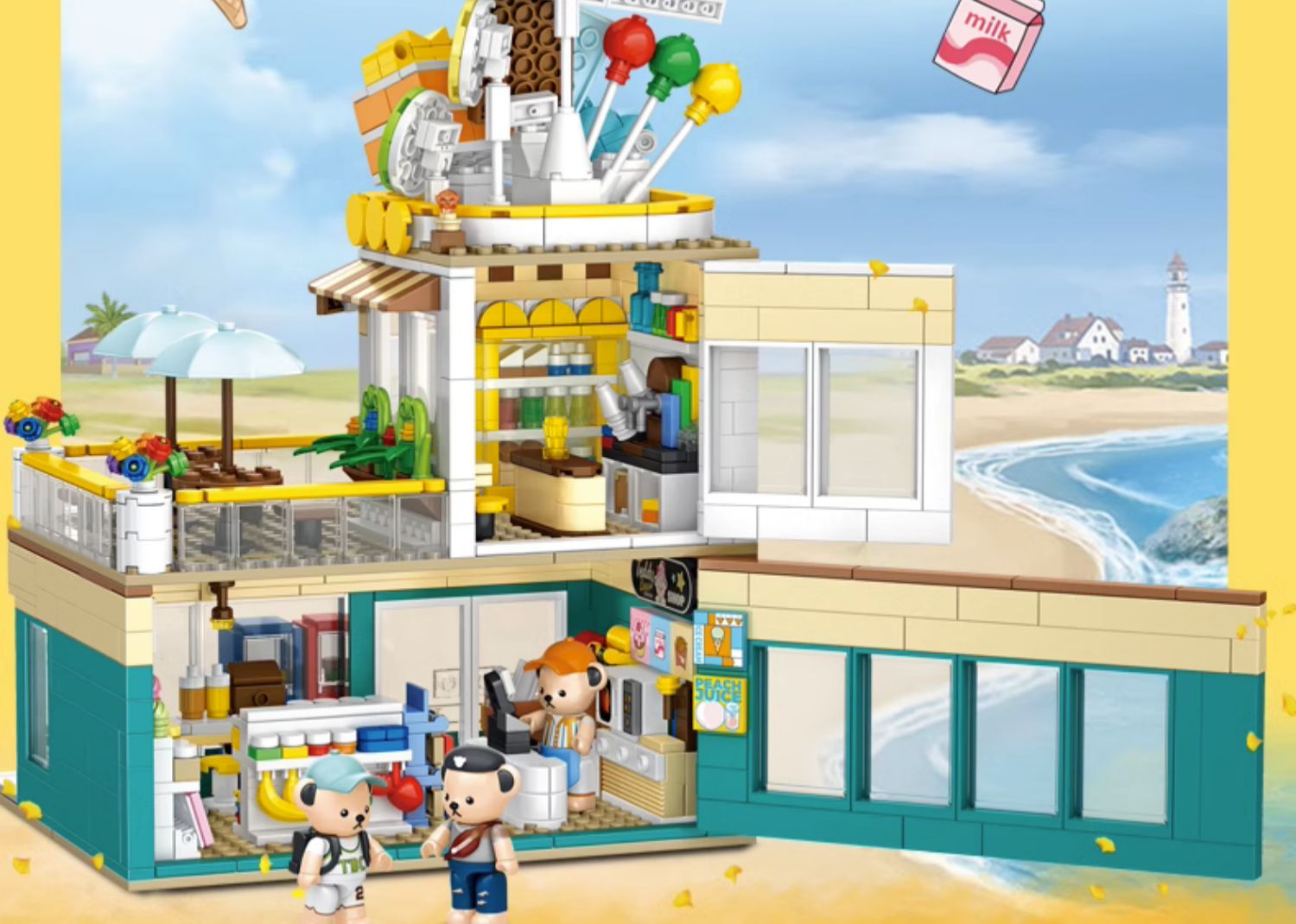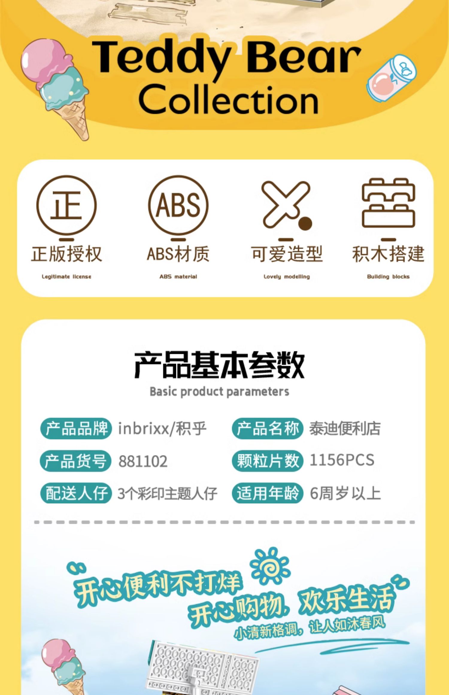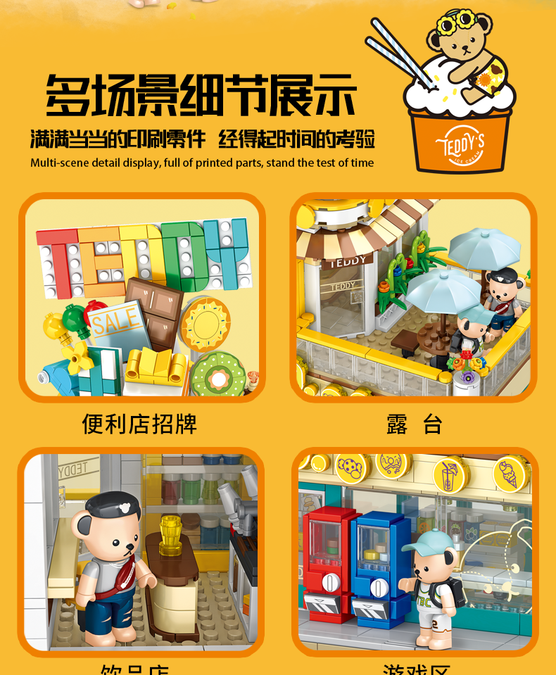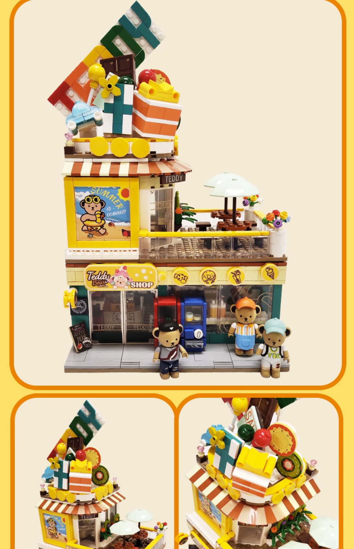 泰迪熊正版授权治愈咖啡屋小颗粒拼装积木摆件模型潘洛斯