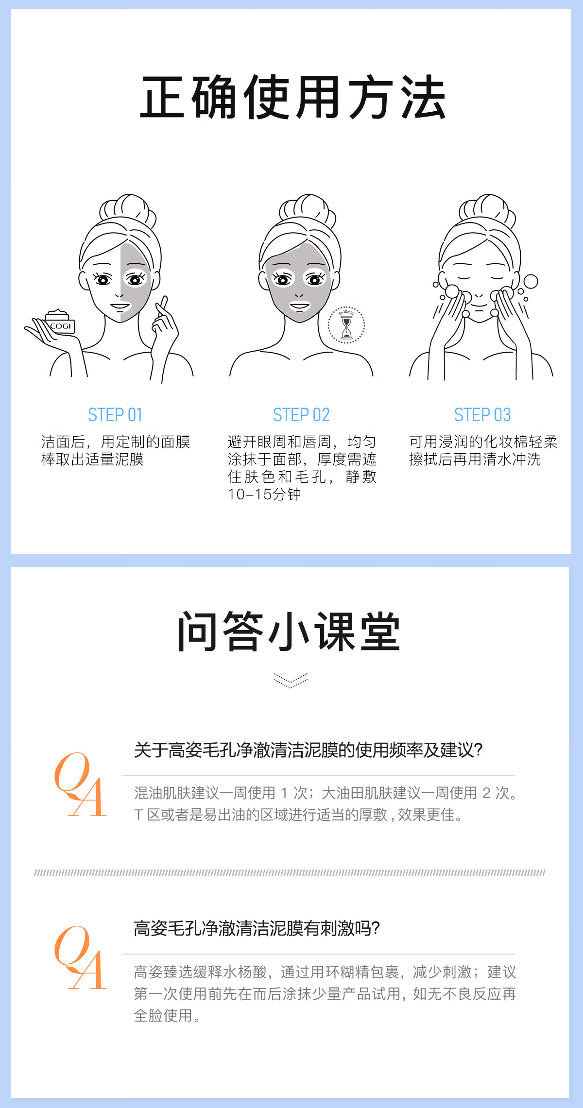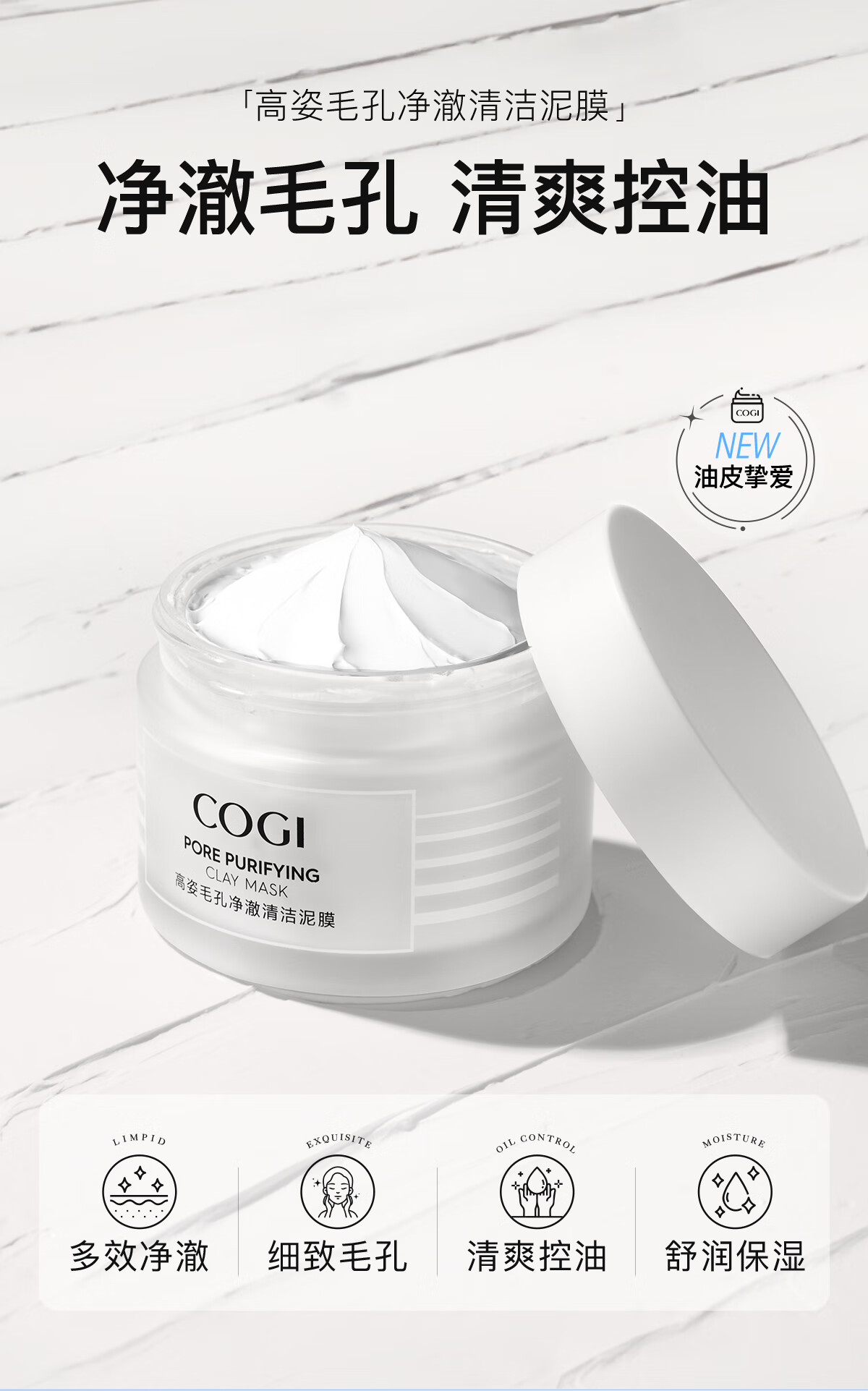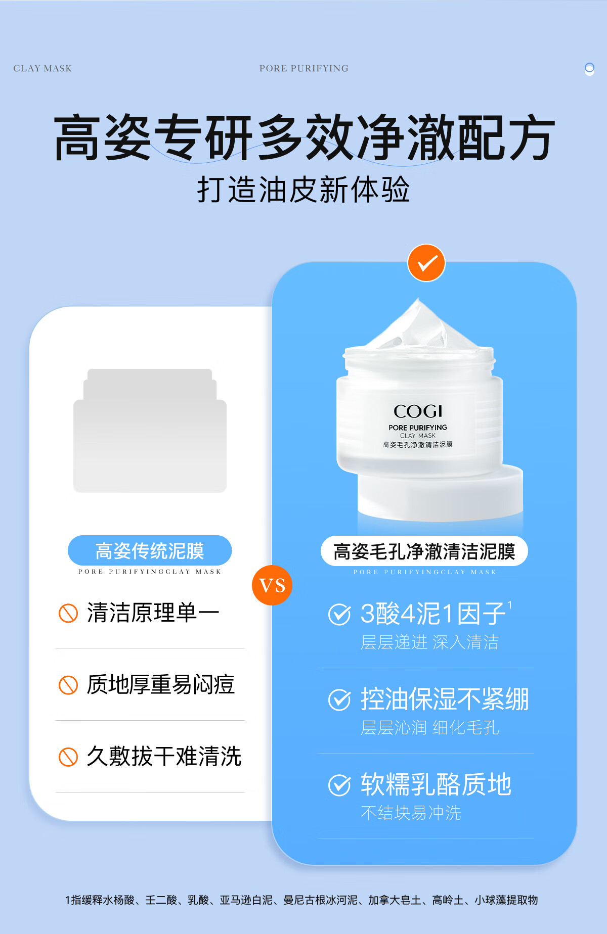 高姿 面膜毛孔净澈清洁泥膜100g 深澈清洁清爽控油多酸祛痘 涂抹式