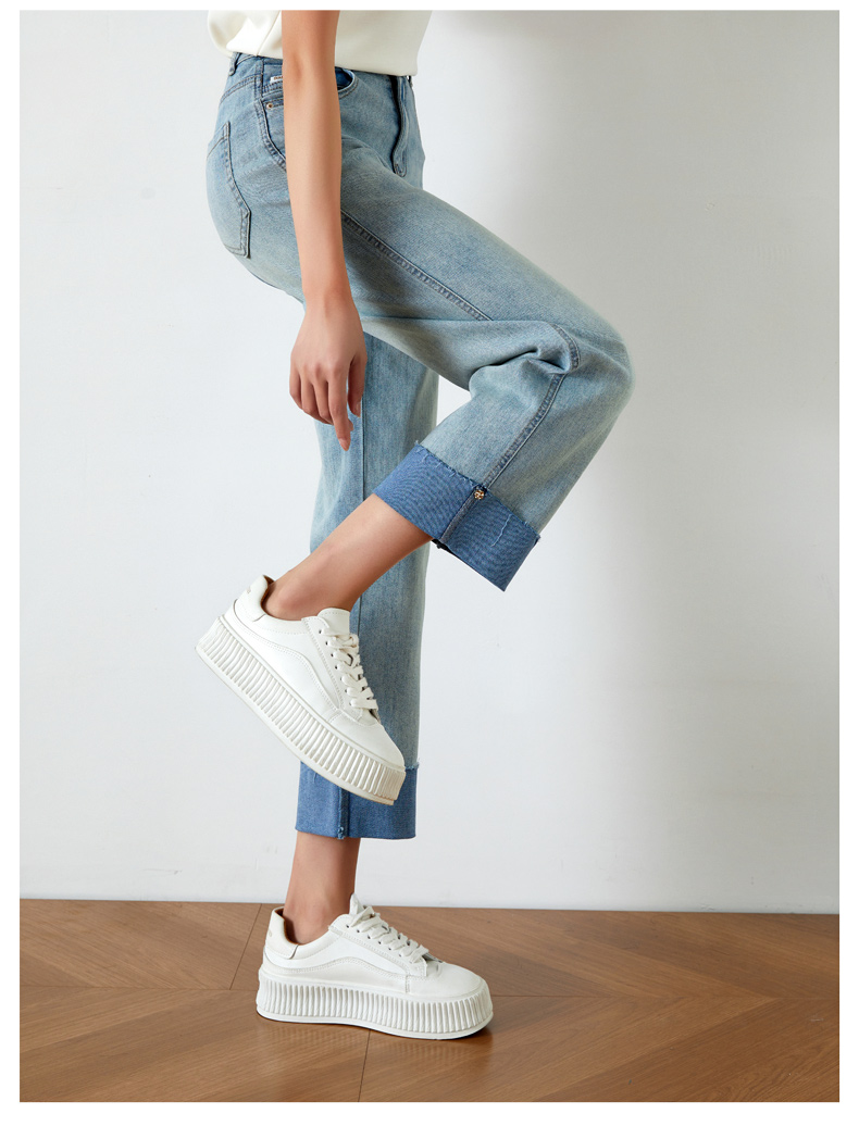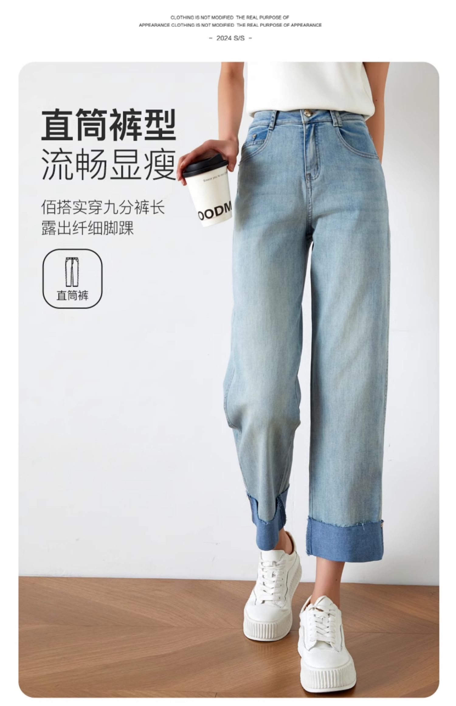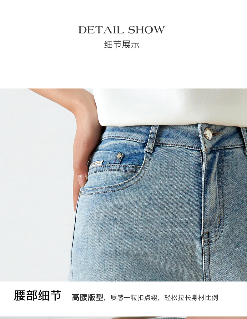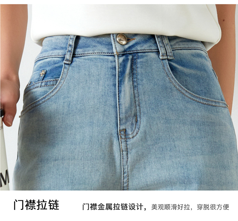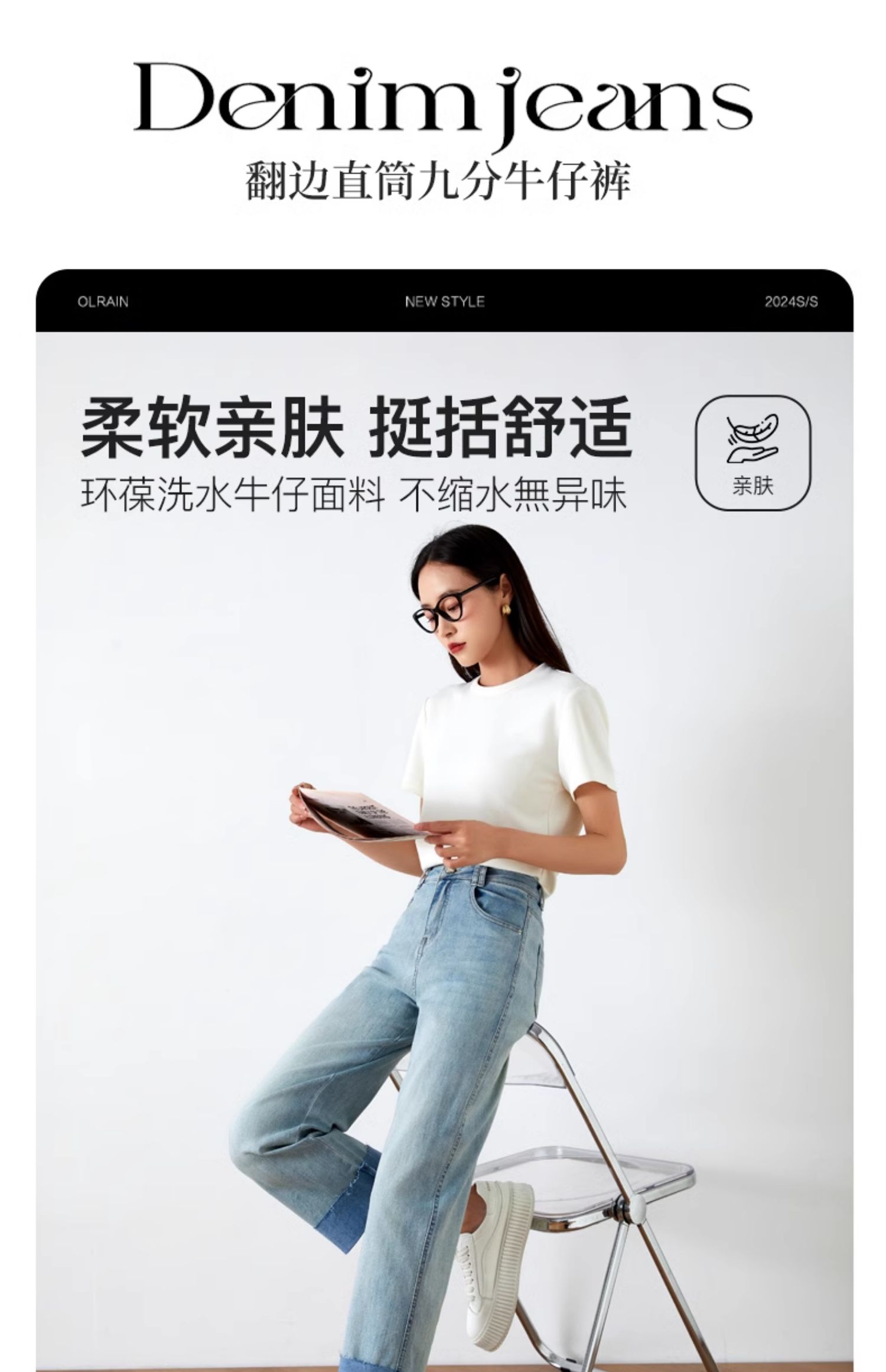 OLrain欧芮儿浅蓝色牛仔裤女夏季2025年新款翻遍直筒九分长裤