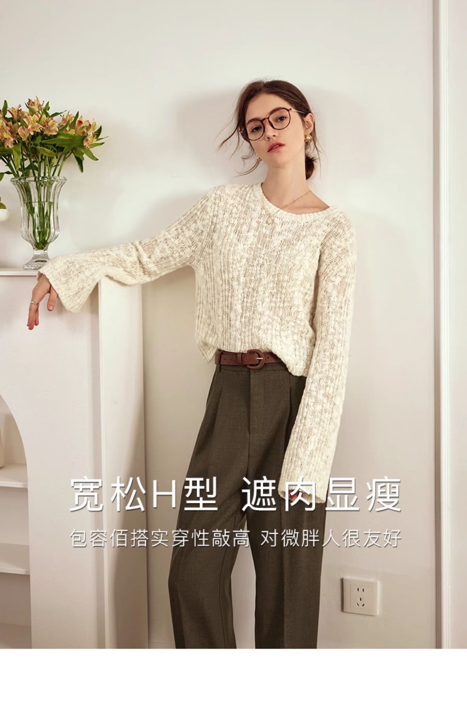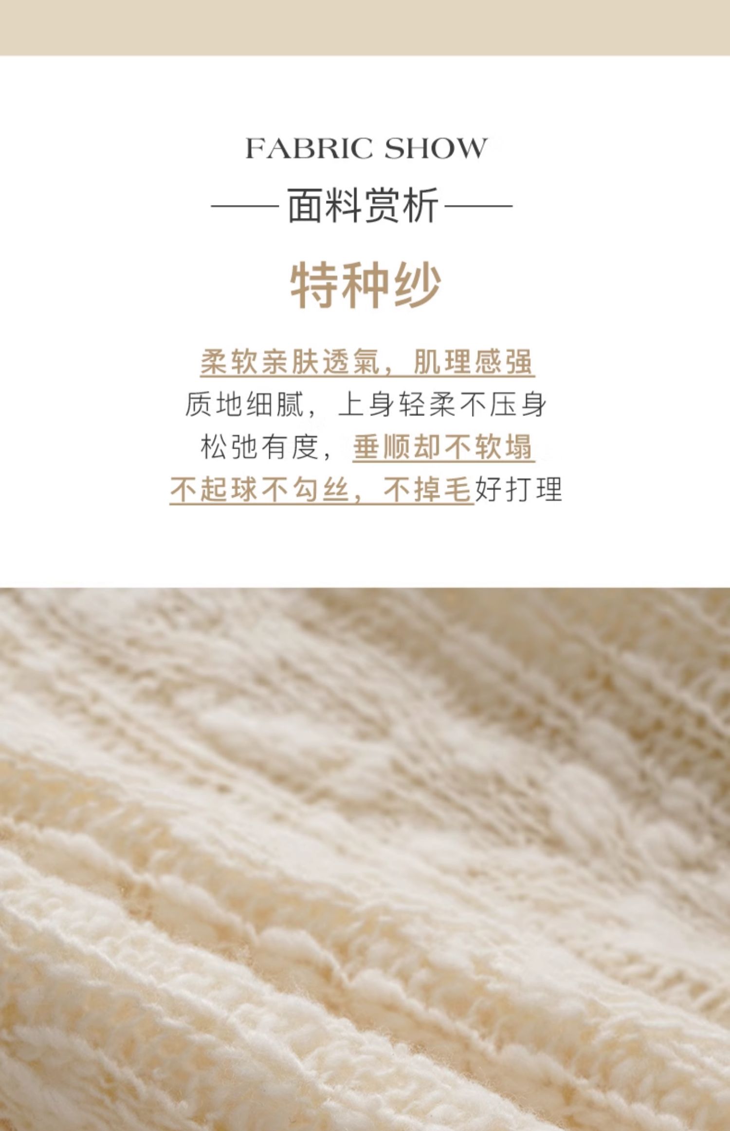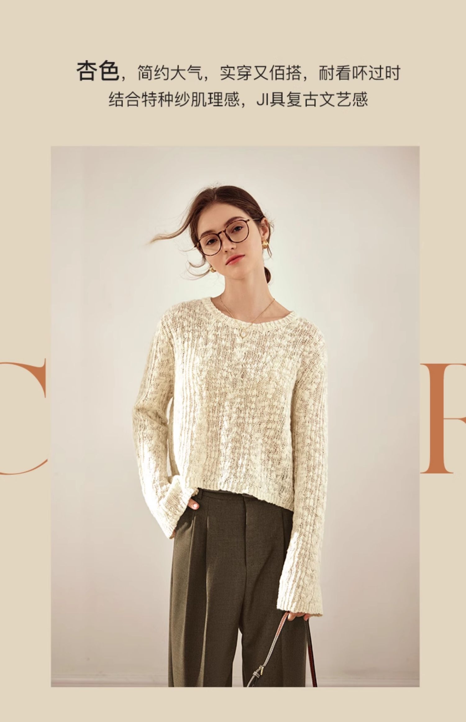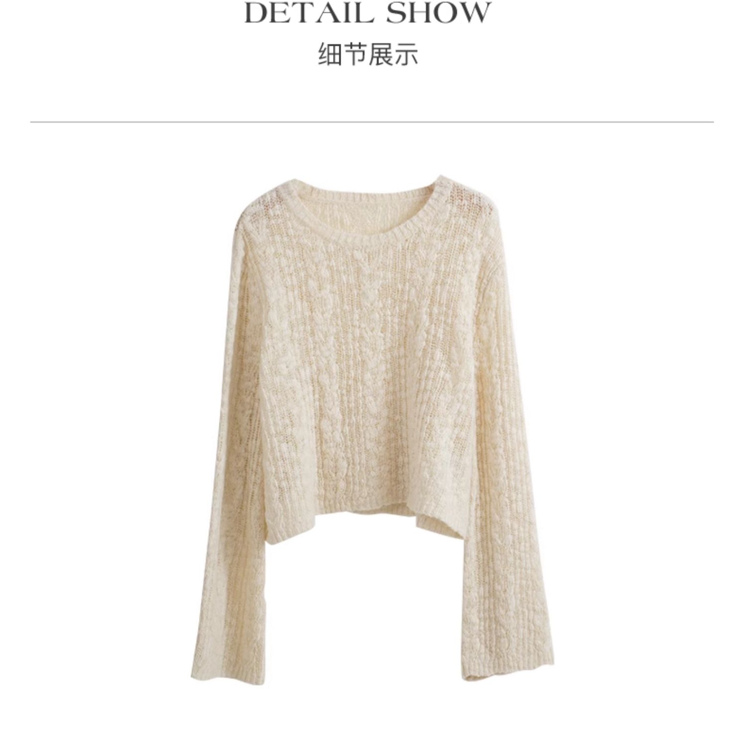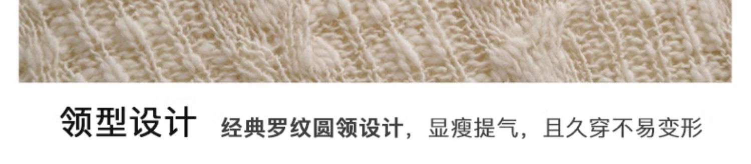 OLrain欧芮儿杏色镂空针织衫女早春2024年新款宽松圆领套头毛衣