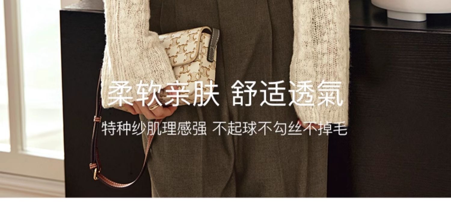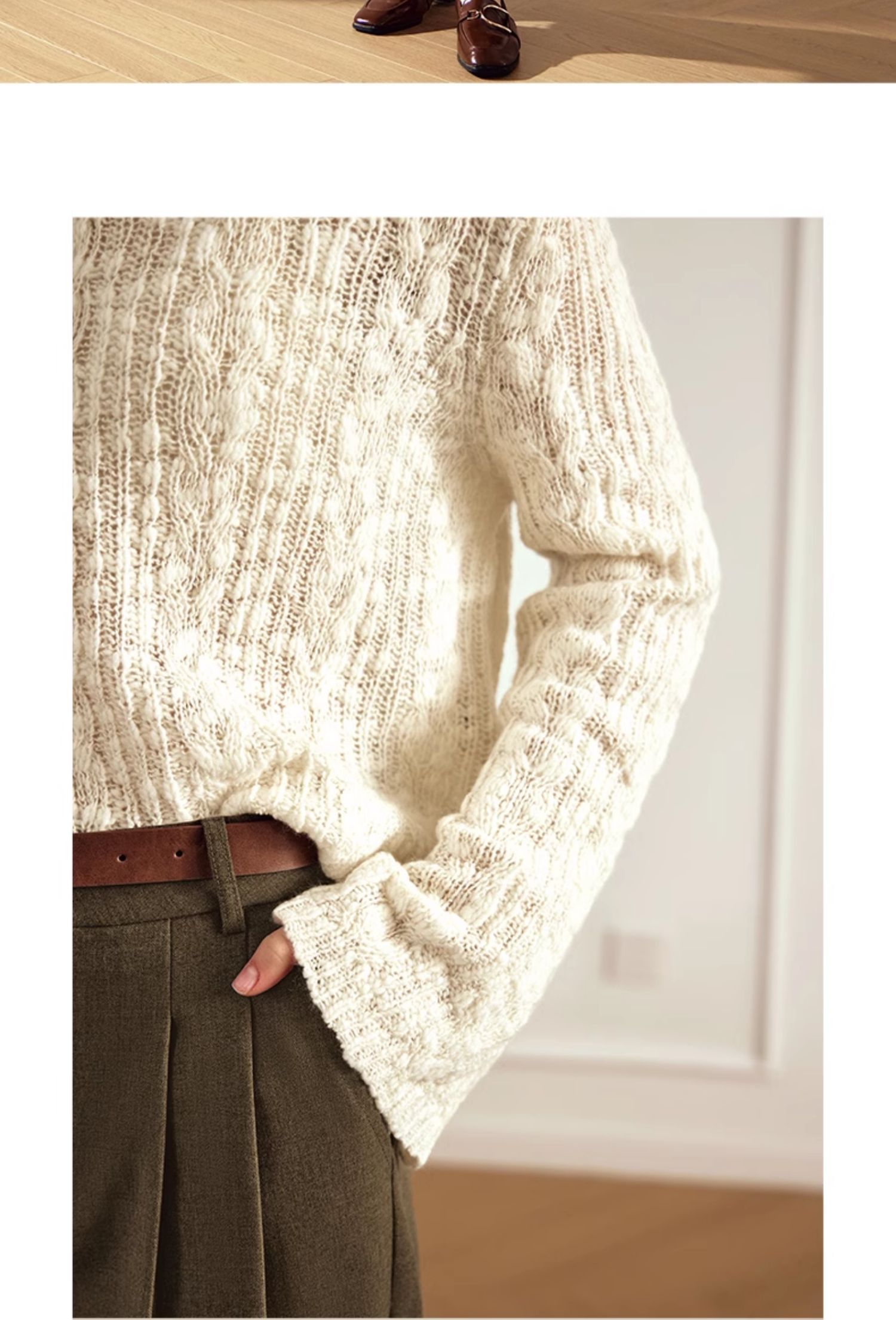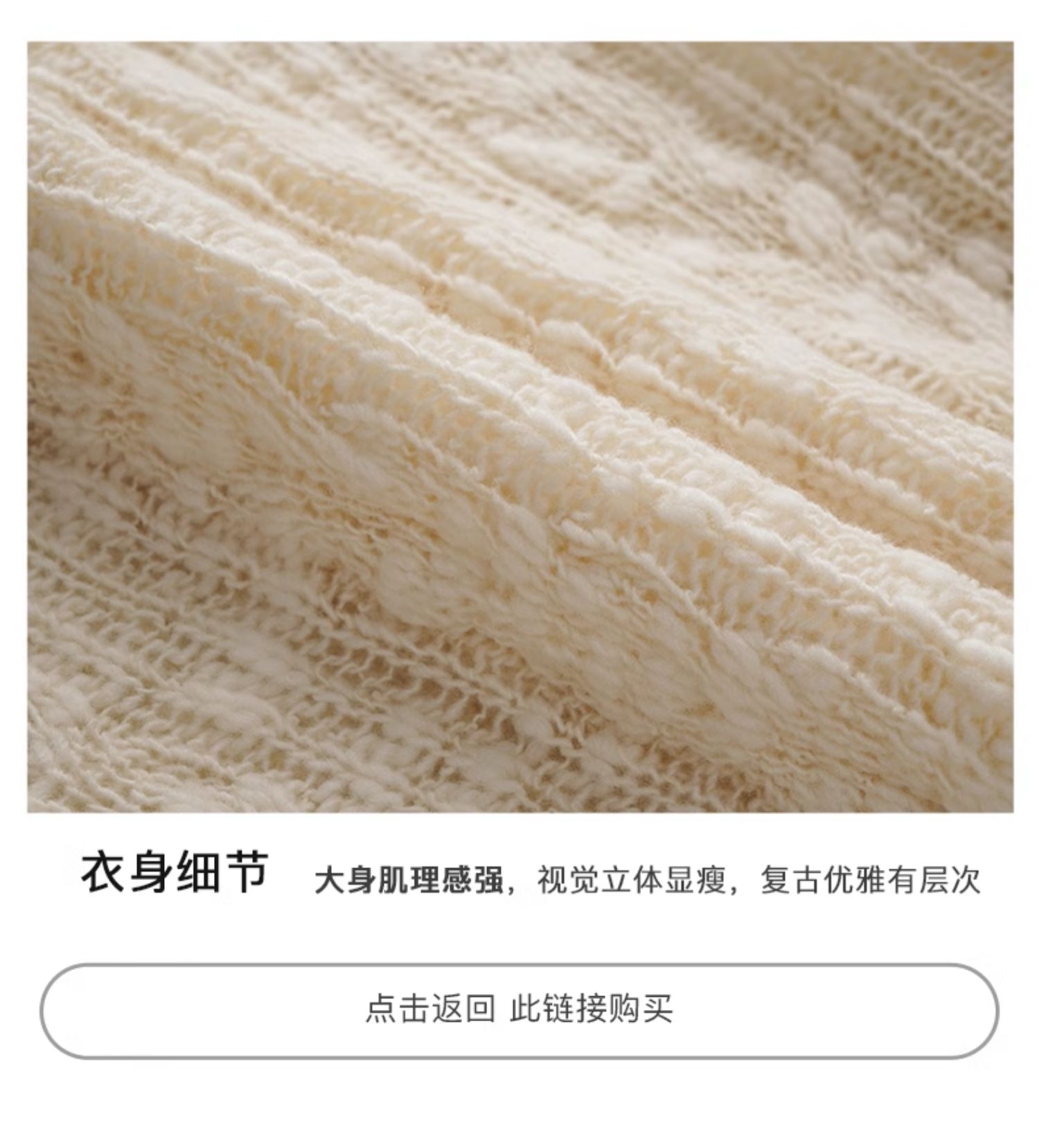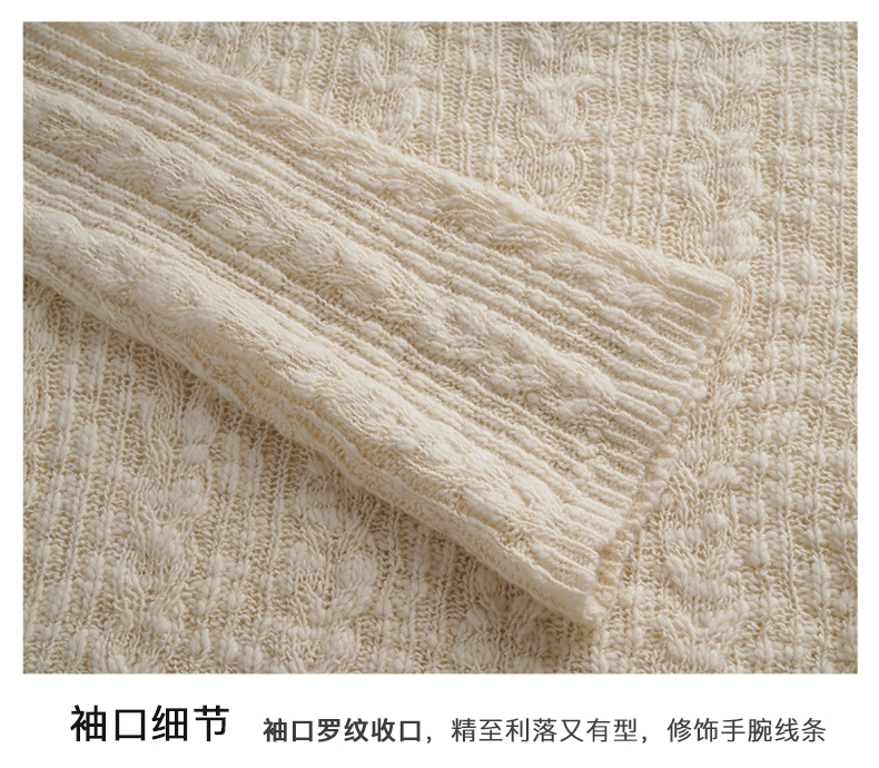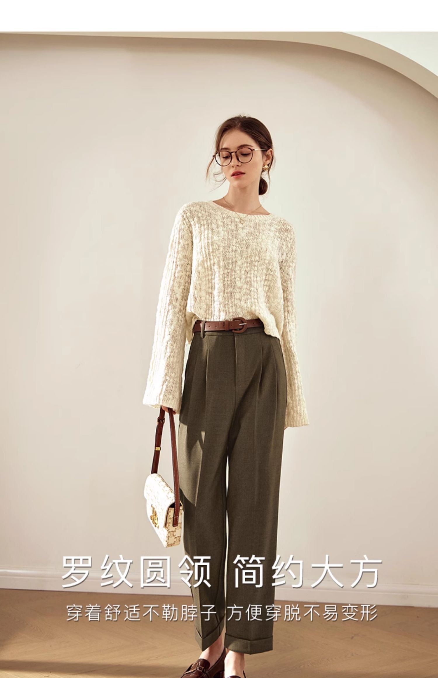 OLrain欧芮儿杏色镂空针织衫女早春2024年新款宽松圆领套头毛衣