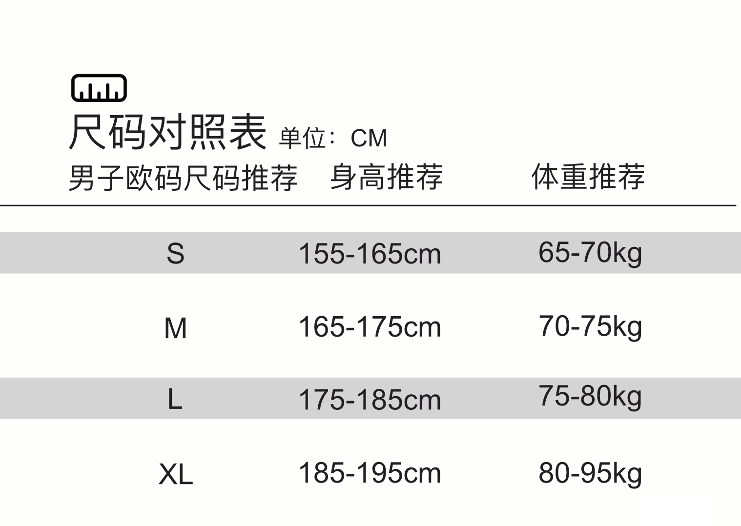 美版请参考上图尺码表!