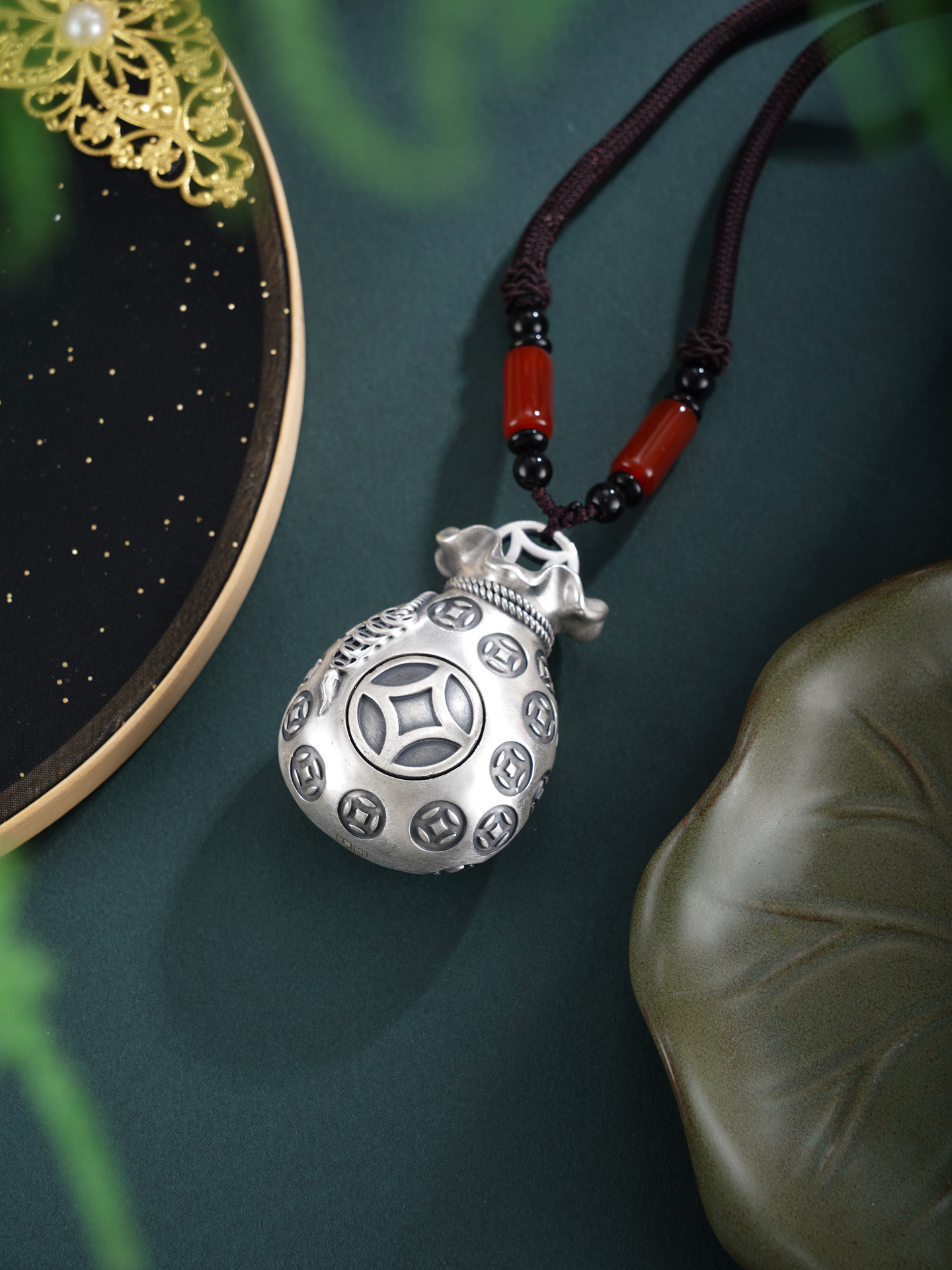 子佩集【聚宝生财】银S999手把件【YSY017】可转动钱币福袋2602