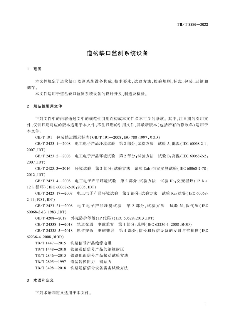 4884 道岔缺口监测系统设备TB/T 3386-2023